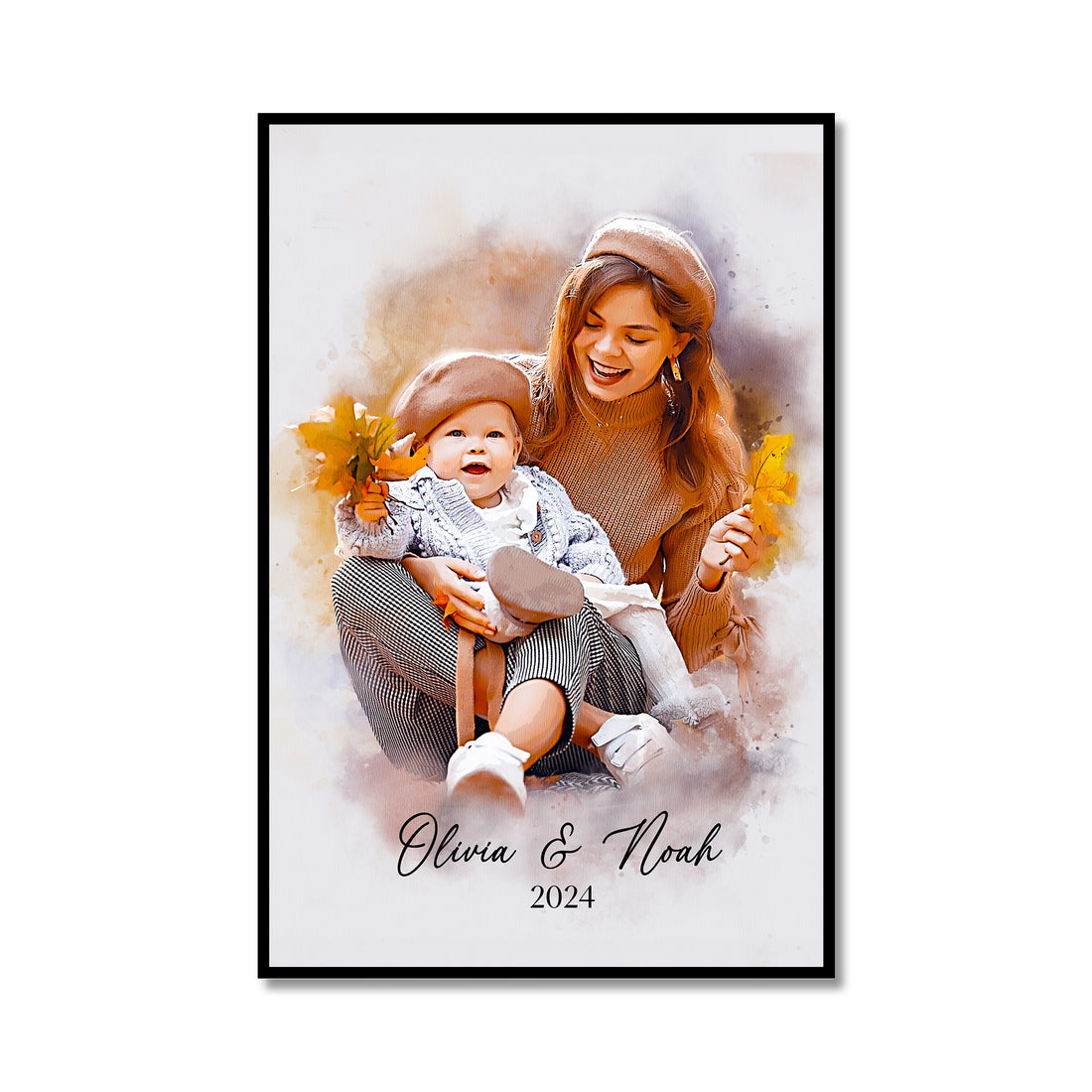Custom Mom Portrait Poster Canvas Prints with Your Photos, Personalized Watercolor Grandma Picture Frame, Customized Family Portrait Pictures