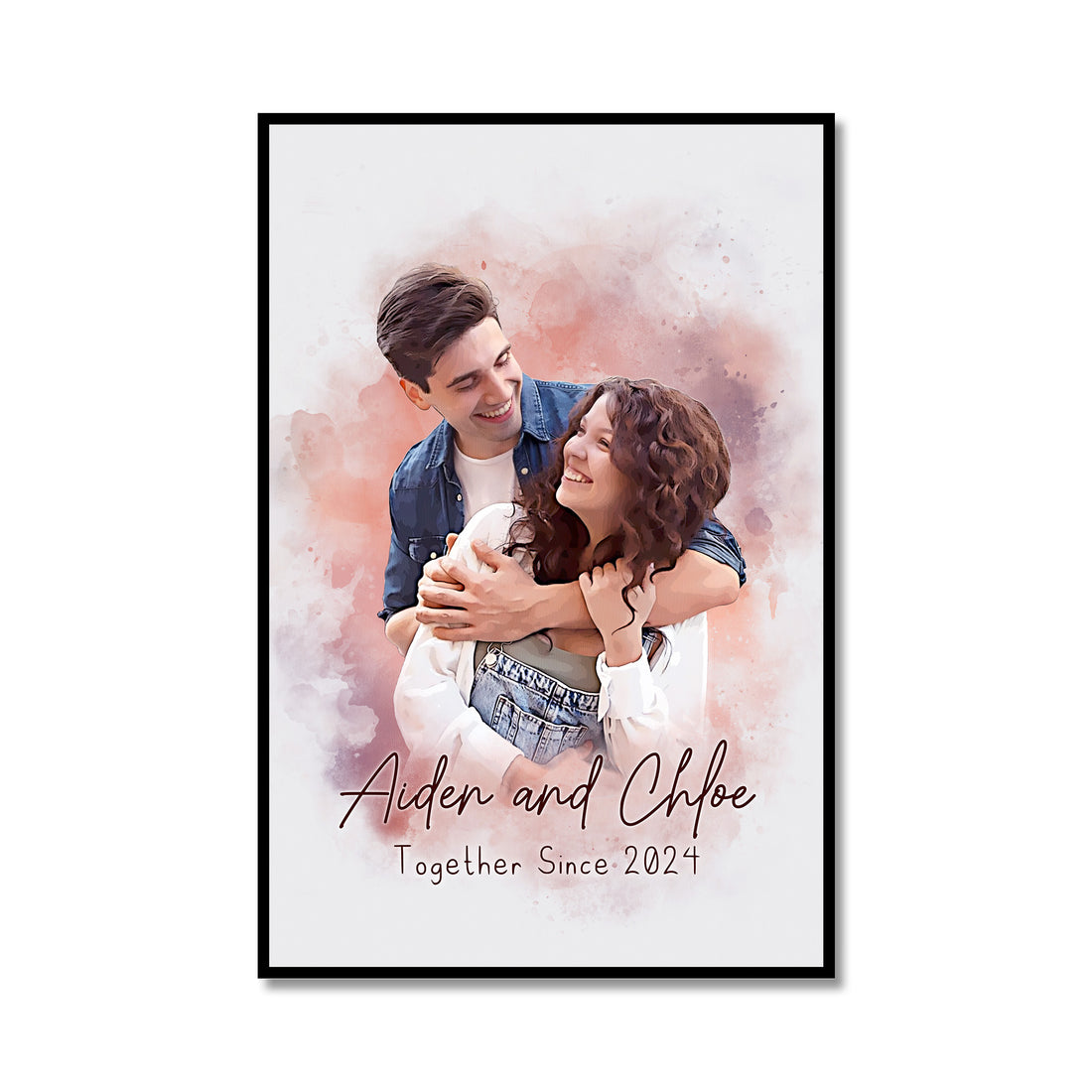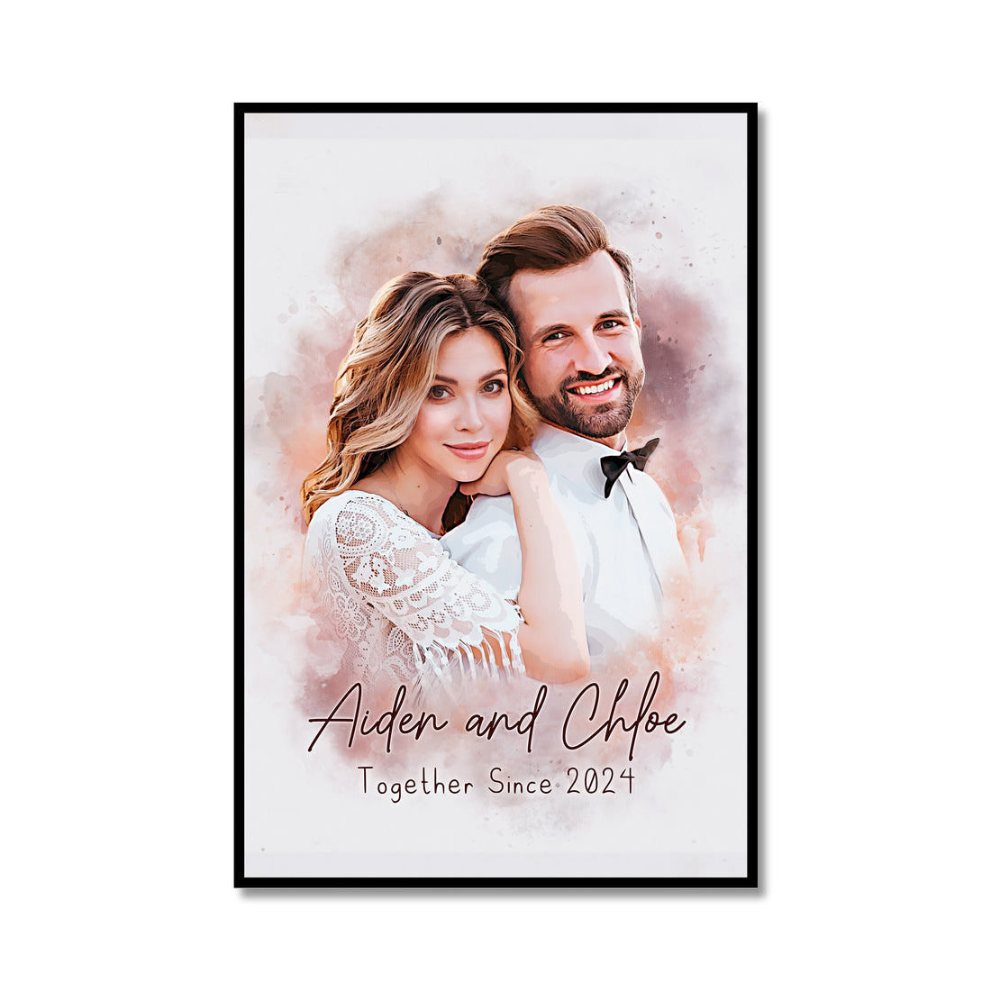 Custom Watercolor Portrait Canvas Wall Art for Couple, Personalized Picture Frames for Couples, Couples Wall Decor Bedroom