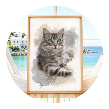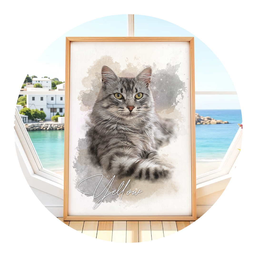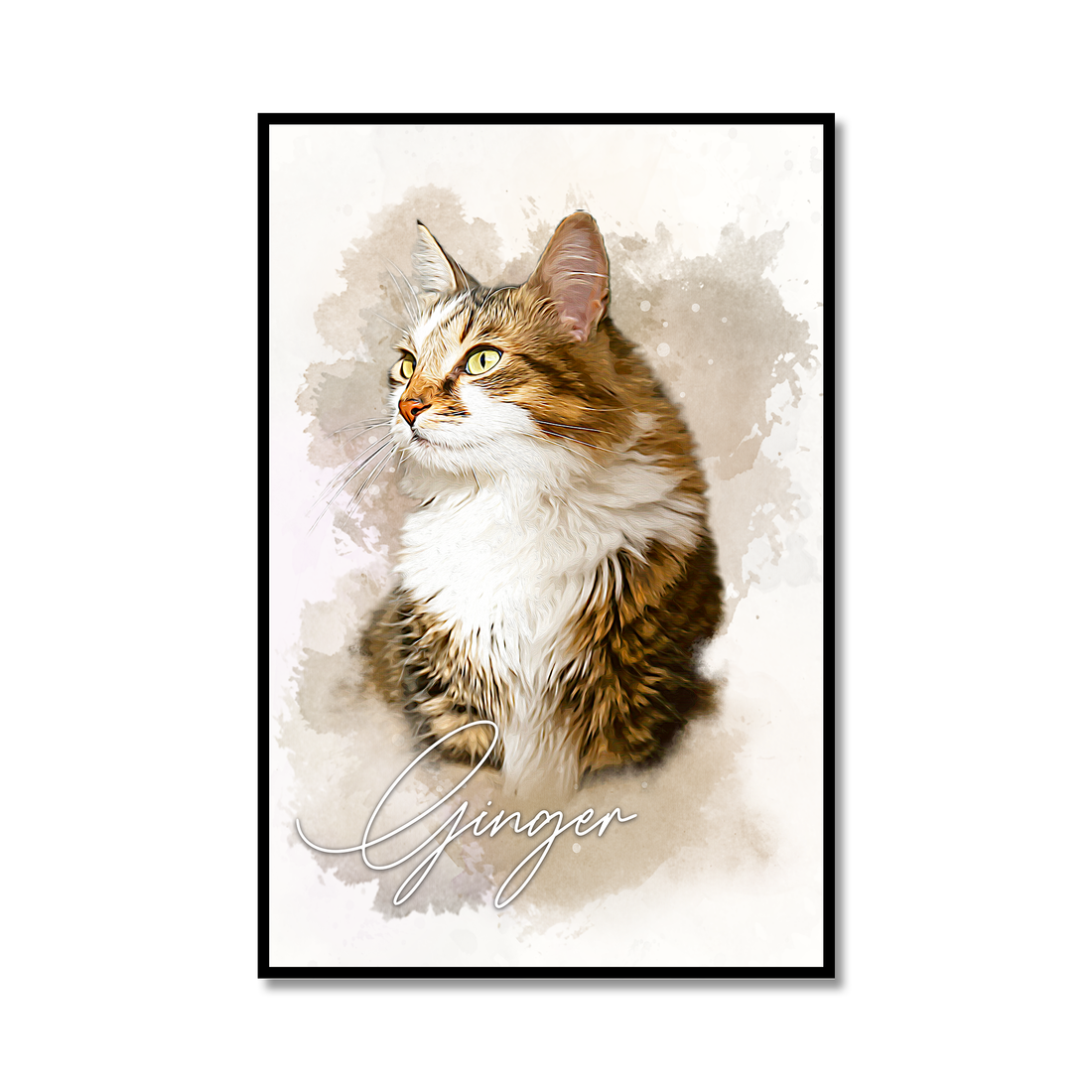 Custom Pet Portrait from Photo, Watercolor Cat Portrait Painting, Personalized Cat Canvas Wall Art, Cats Decorations for The Home