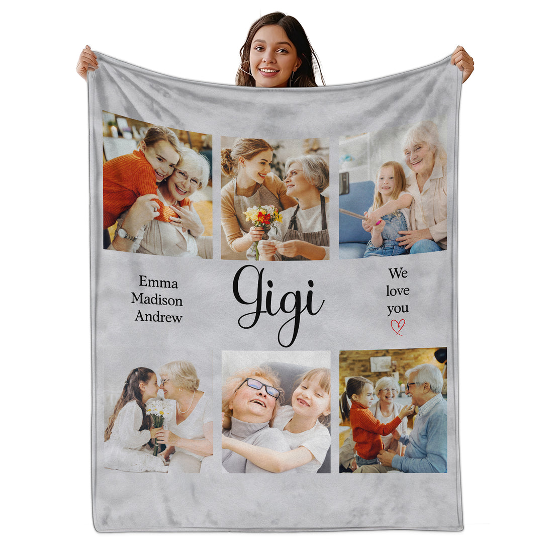 Custom Photo Collage Blanket, Personalized GiGi Blanket with Kids' Names and Pictures, Mother's Day Gift for Mom or Grandma