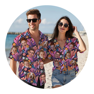 Custom Face Shirt, Personalized Sunset Hawaiian Shirt for Men, Tropical Beach Vacation Gift, For Men & Youth, for Summer or Anniversaries