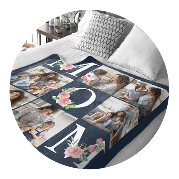 Custom Photo Collage Blanket, Personalized Grandma Blanket with Family Pictures and Names, Happy Mother's Day Gift for Mom or Grandma