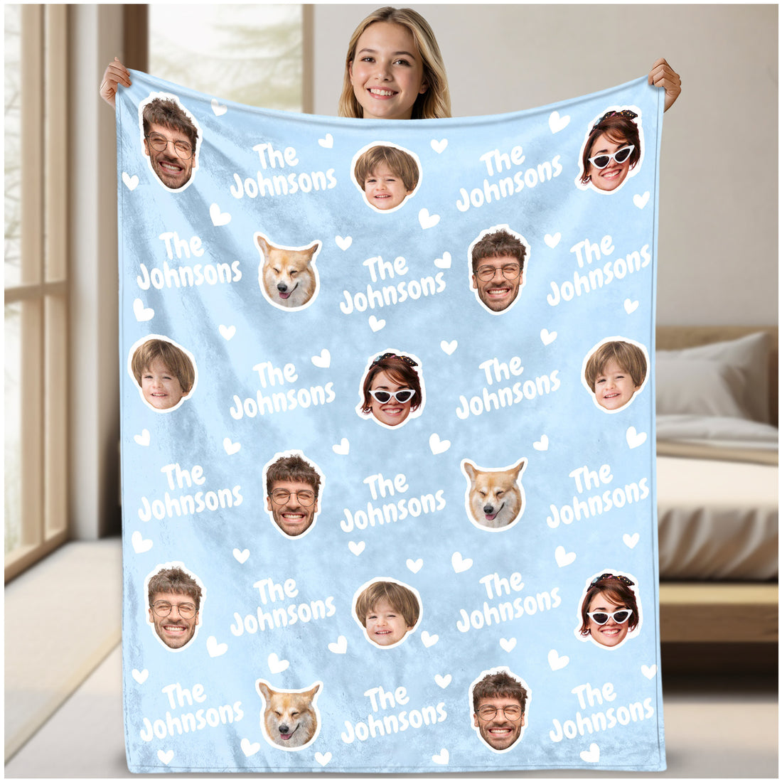 Custom Face Blanket With Multi Colors, Personalized Funny Face Blanket With Pictures for Friend Couple Family Pet Lovers, Surprise Gifts for Him Her Husband Wife on Valentine Day Anniversary Wedding