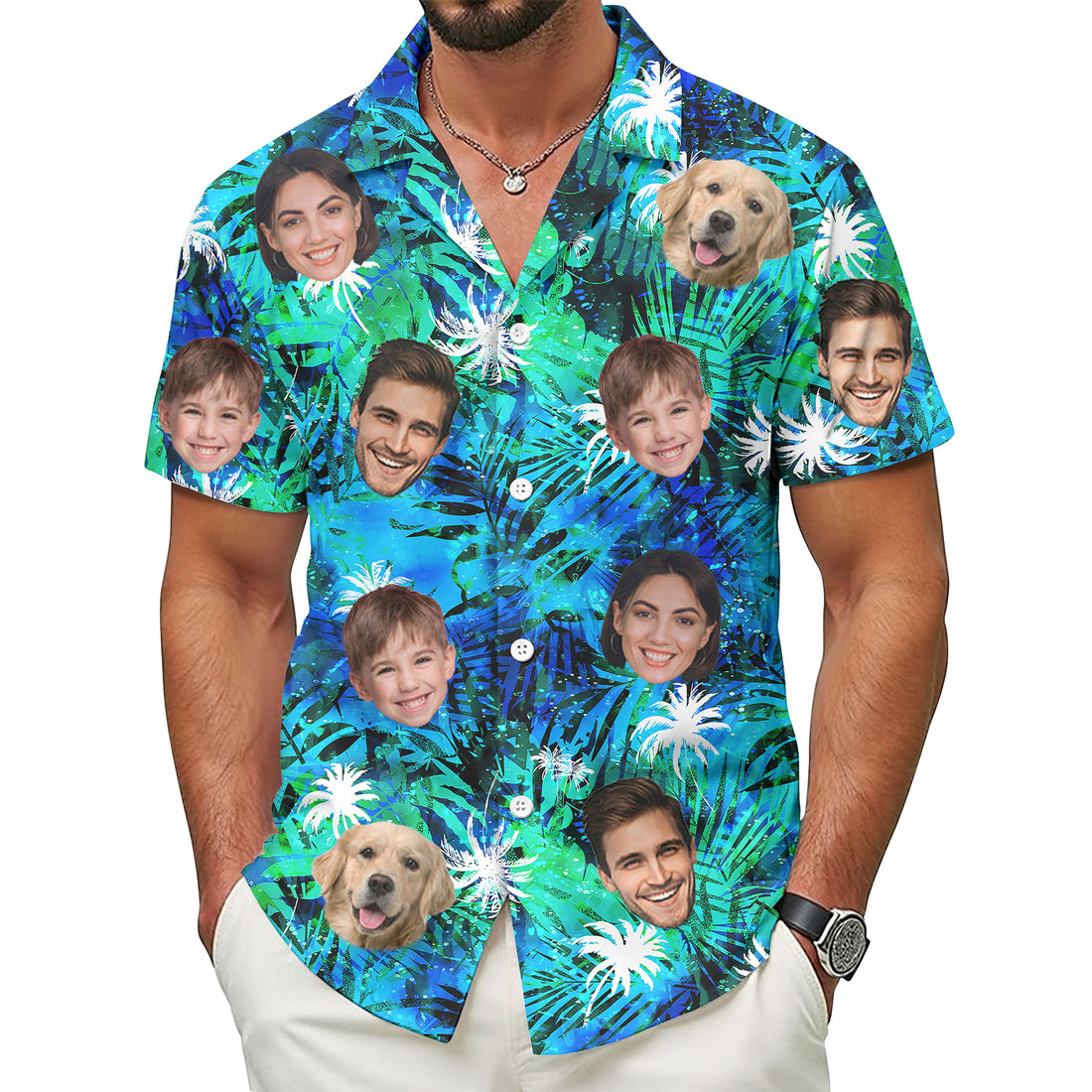 Custom Tropical Blue Hawaiian Shirt with Faces, Personalized Family Beach Vacation Shirt with Pet Photo, for Boyfriends, Husbands, for Special Days