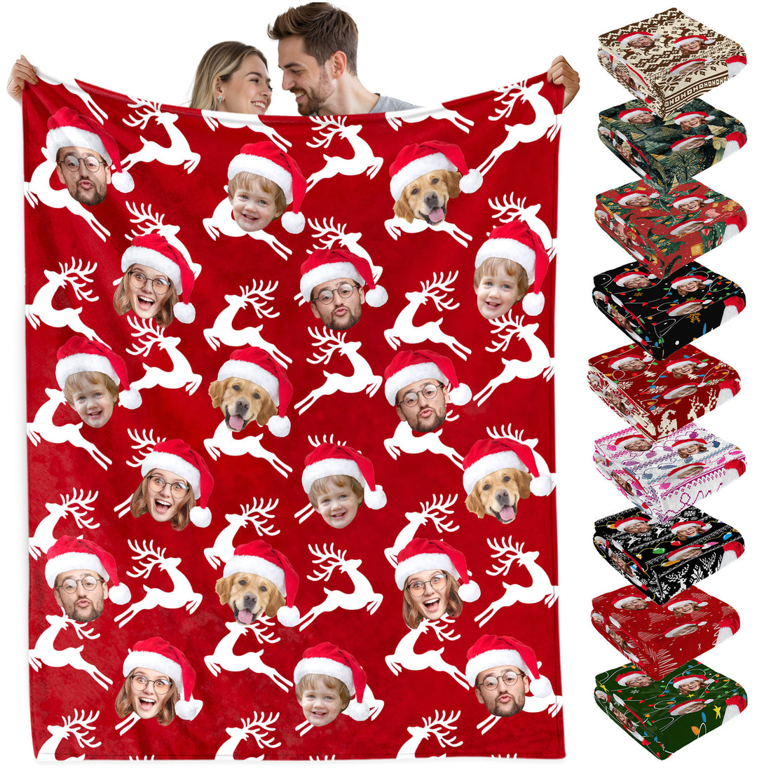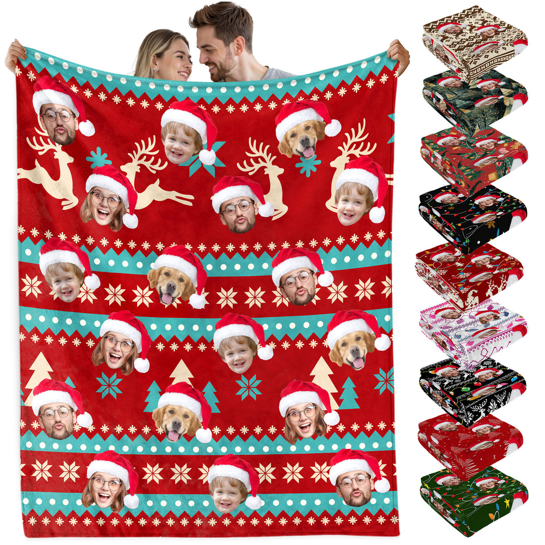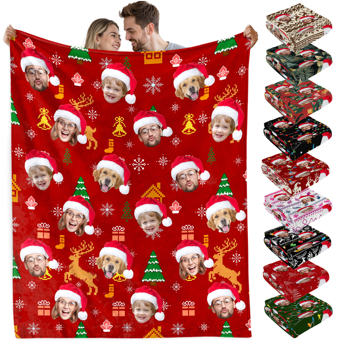 Custom Christmas Blanket with Face, Personalized Funny Christmas Blankets with Photos Multi Background Colors, Customized Photo Blanket Xmas Gift for Family Couple Pet Lovers Home Decoration Style 24