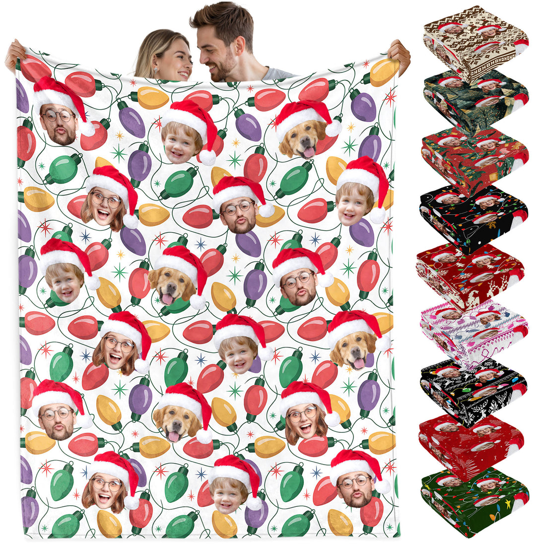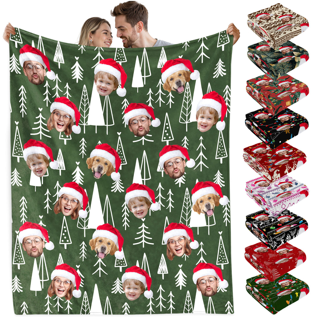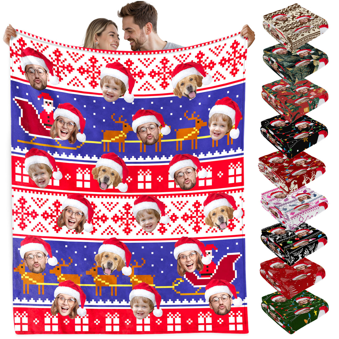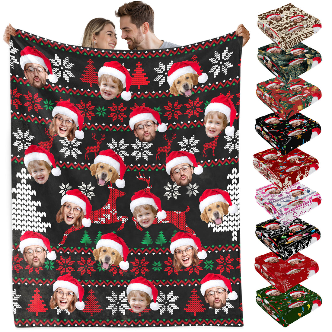 Custom Christmas Blanket with Face, Personalized Funny Christmas Blankets with Photos Multi Background Colors, Customized Photo Blanket Xmas Gift for Family Couple Pet Lovers Home Decoration Style 24