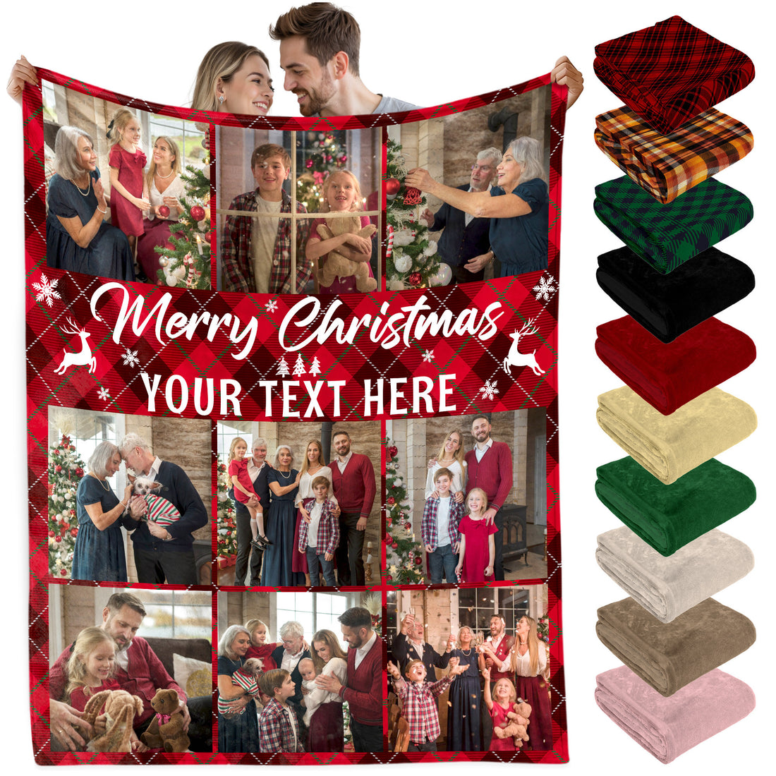 Customized Christmas Blanket with Photos Text, Personalized Photo Blanket with Text Multi Background Colors, Custom Photo Blankets Christmas Gifts For Mom Dad from Son Daughter on Holiday Season (9 Photos)
