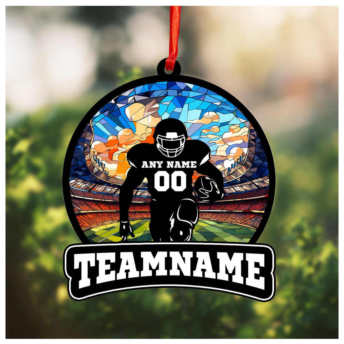 Personalized Football Suncatcher Ornament with Name, Number, Team Name D3