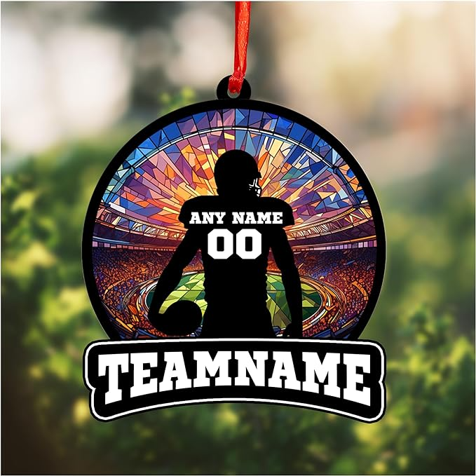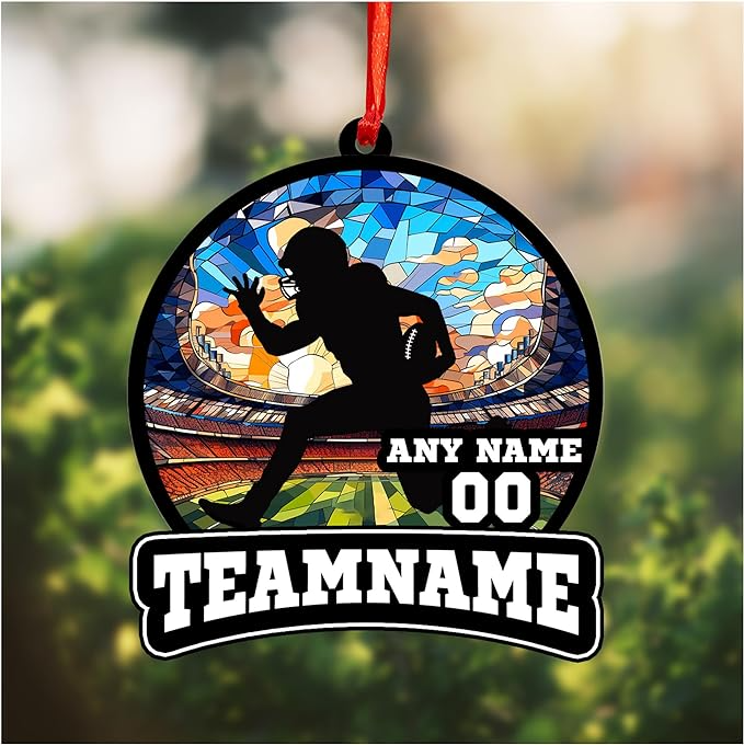 Personalized Football Suncatcher Ornament with Name, Number, Team Name D8