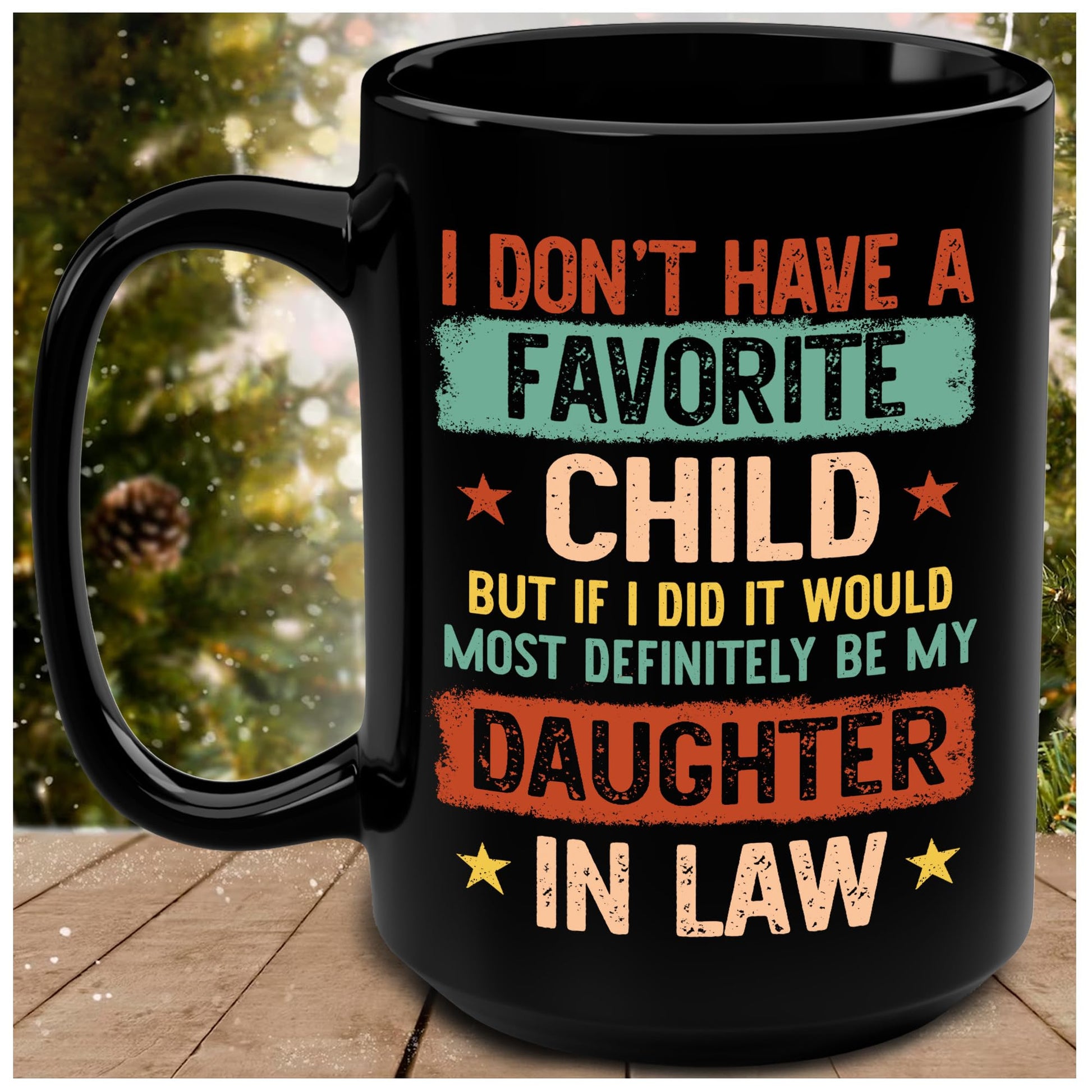- I Don't Have A Favorite Child But If I Did It Would Most Definitely Be My Daughter In Law Mug is made to be an excellent gift for father in law or mother in law on various occasions like Christmas, New Year's Eve, Birthday, Mother's Day, Father's Day and Thanksgiving.