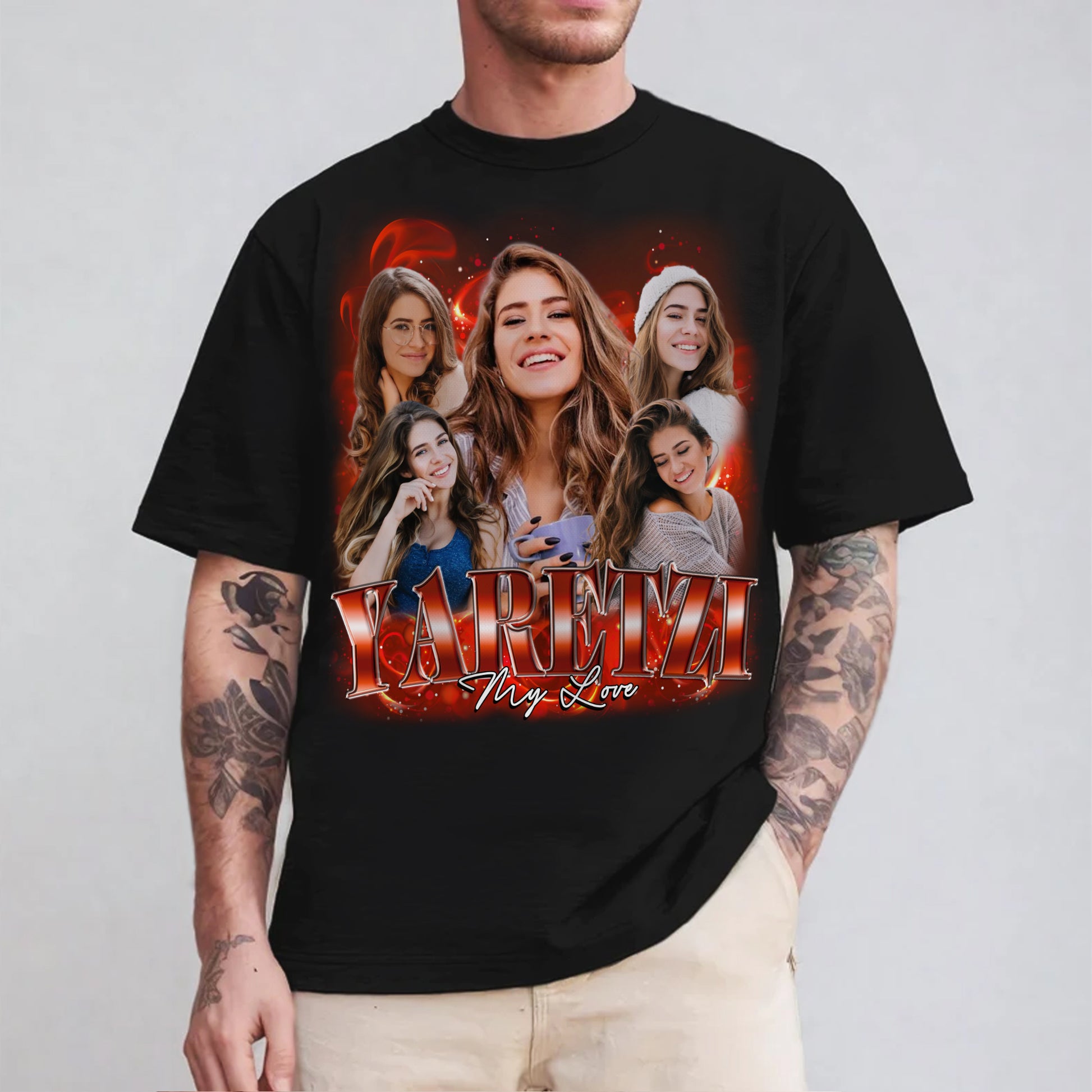 Custom Bootleg Photo Tee Shirt for Men & Women, Personalized Face & Name Shirt Gift for Couples & Friends