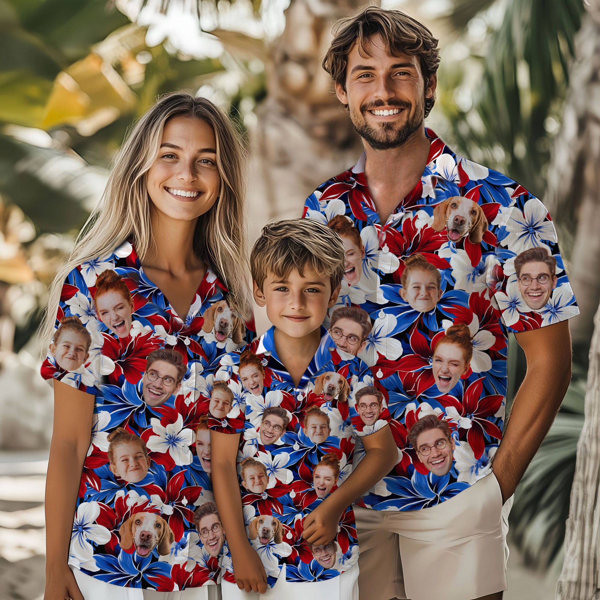 Custom Face Hawaiian Shirt, Personalized Bold Red White Blue Hibiscus Shirt for Men, Cool Father's Day Gift