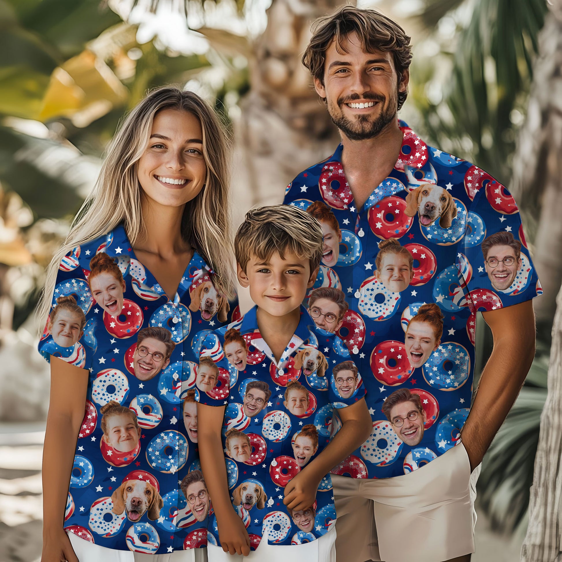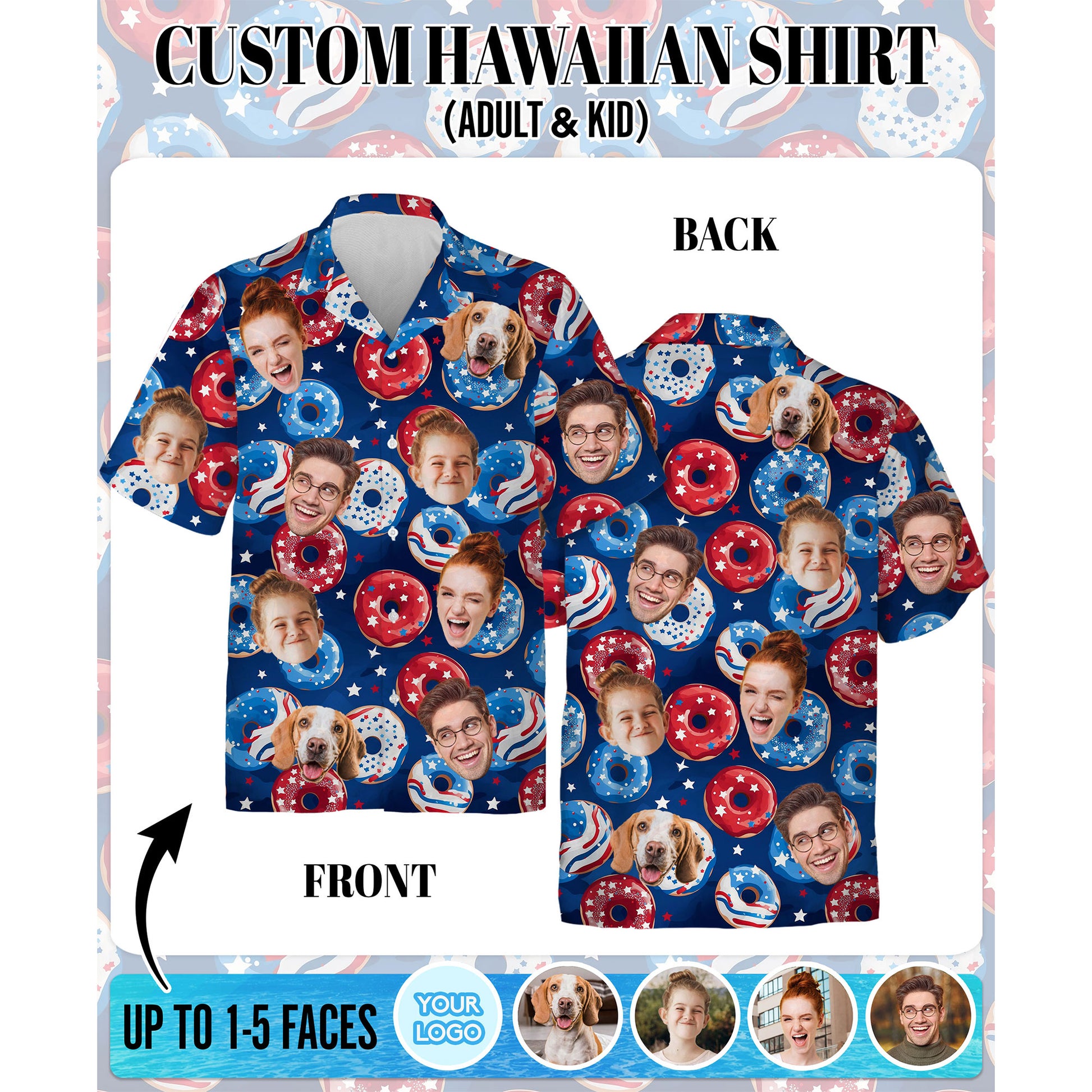 Custom Face Hawaiian Shirt, Personalized Donut and Stars Pattern Shirt for Men, Funny 4th of July Gift, Summer Shirt for Friends or Husband
