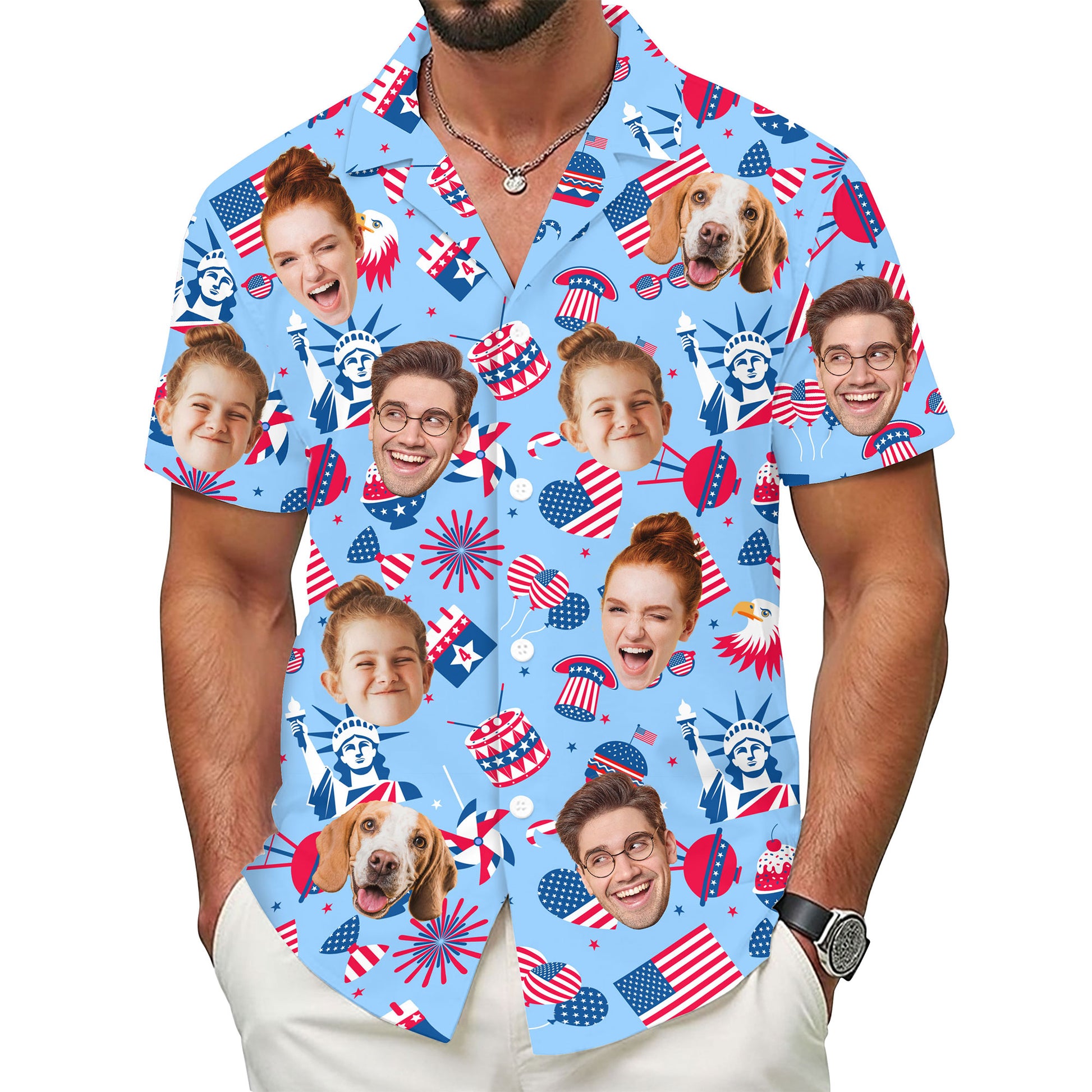 Custom Face Hawaiian Shirt, Personalized Independence Day Shirt for Men, USA Flag Shirt, Unique Gift for Dad or Friends