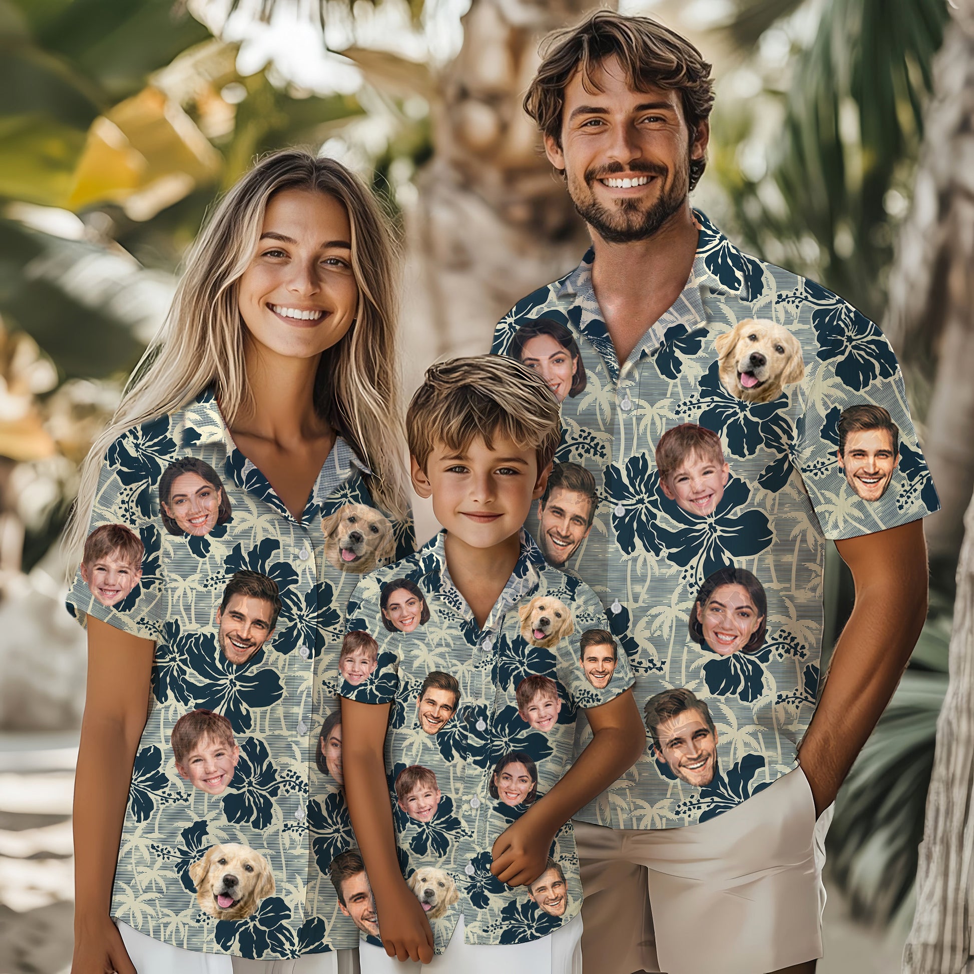 Custom Face Hawaiian Shirt, Personalized Photo Aloha Shirt with Family & Pet Faces, for Women, Kids, and Youth, Gift for Summer or Father's Day