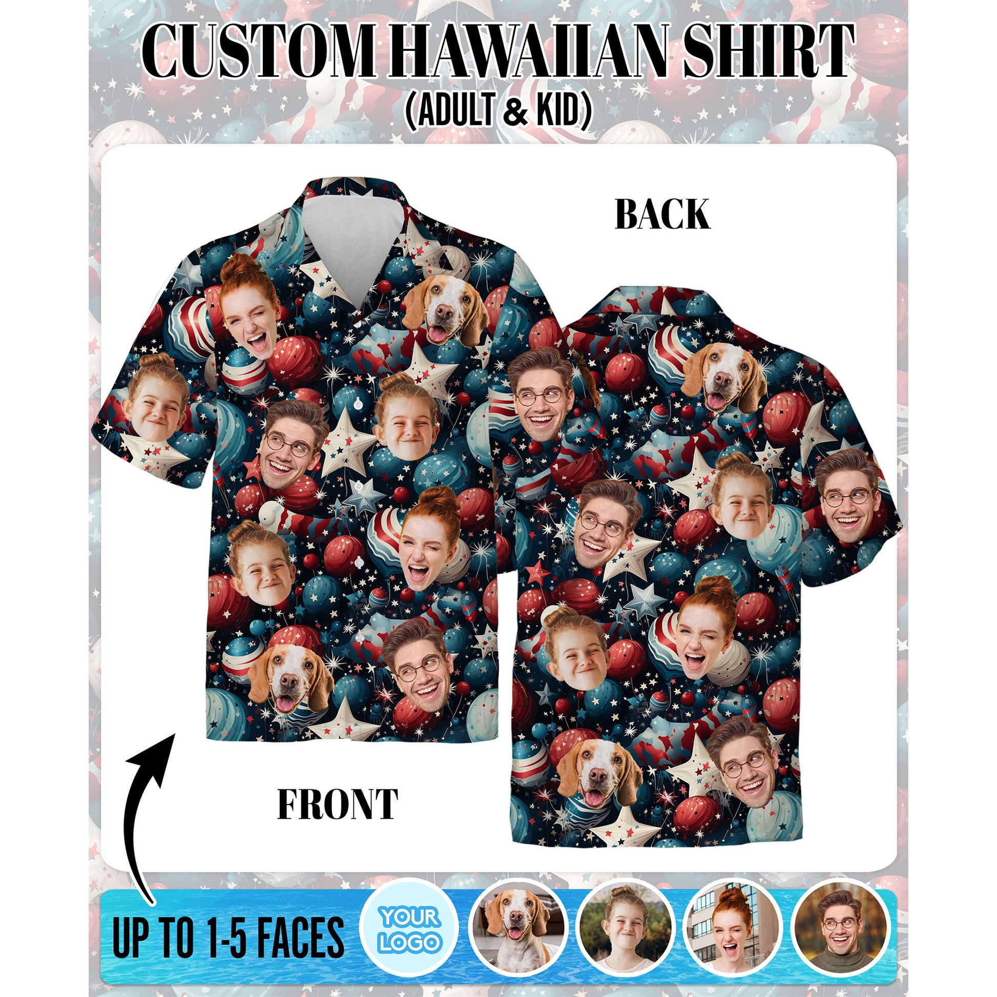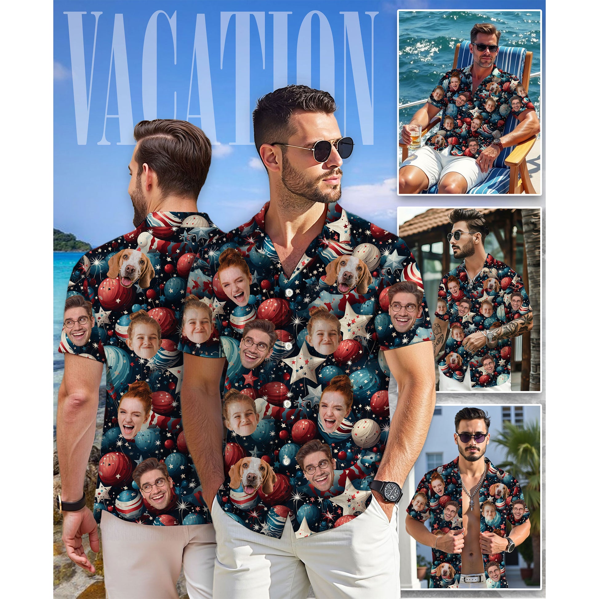 Custom Face Hawaiian Shirt, Personalized Star & Ornament Themed Shirt for Men, Unique 4th of July Gift