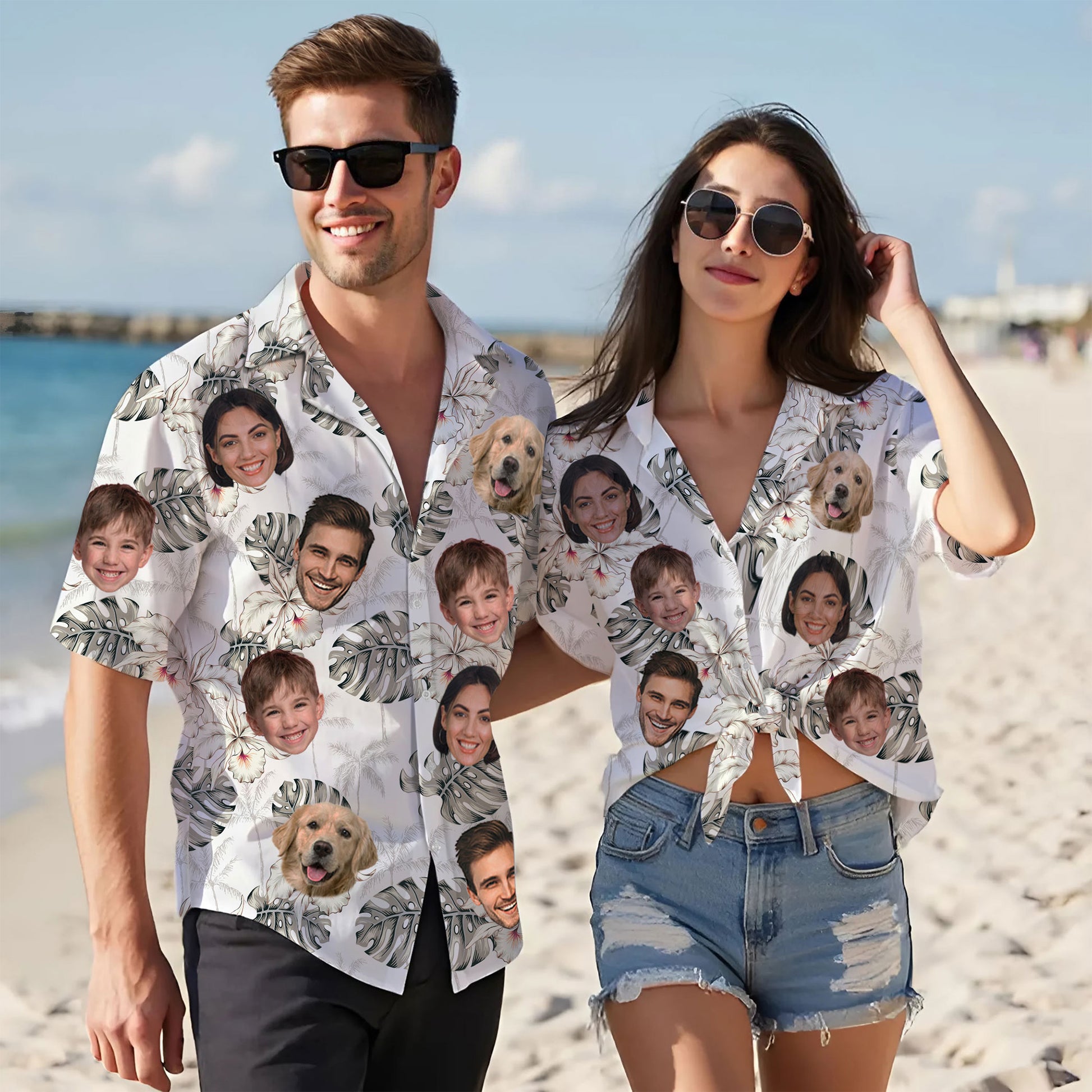 Custom Face Hawaiian Shirt, Personalized White Monstera Floral Shirt for Men, Funny Tropical Gift, For Boyfriends Husbands, Gift for Anniversaries