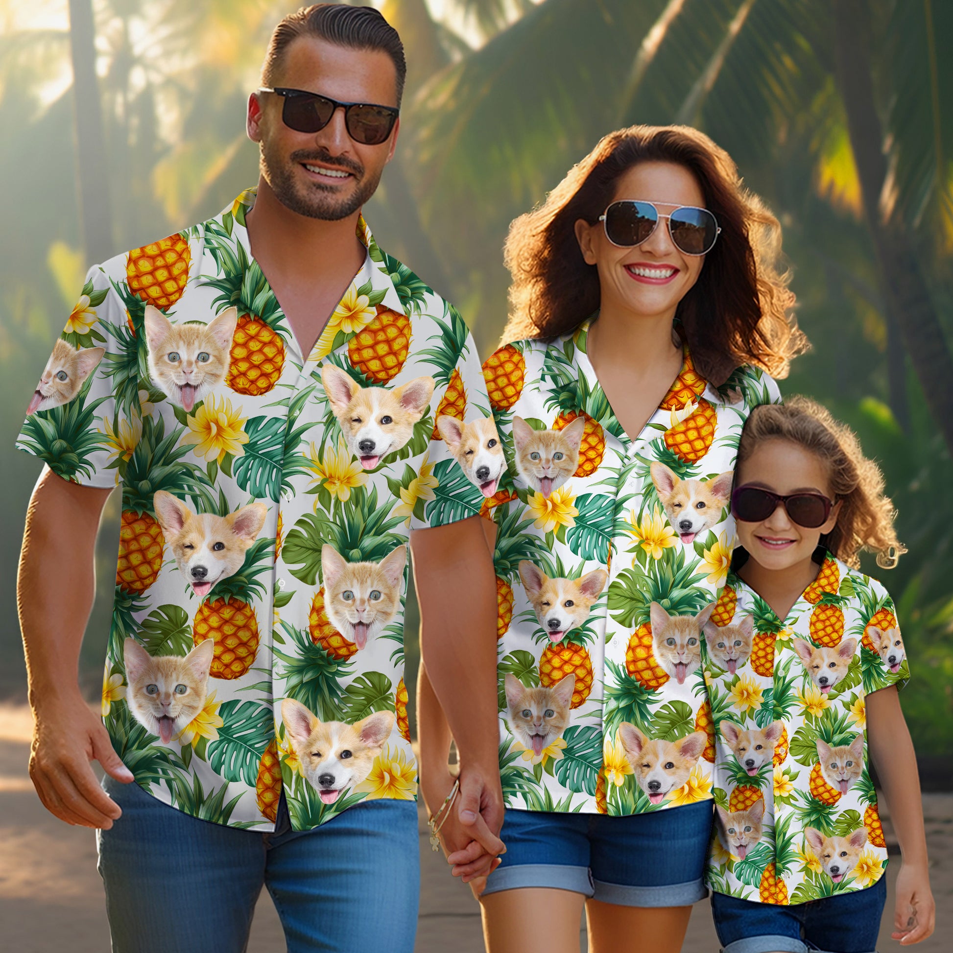 Our design team will work hard to get a perfect cutout of your face from your uploaded photo, so you can wear your own face, love's one, family members, husband, wife, BF, girlfriend, pet, dog or cat on a real Hawaiian shirt. This is a great way to show off your personality or commemorate an exciting summer vacation with your loved ones.