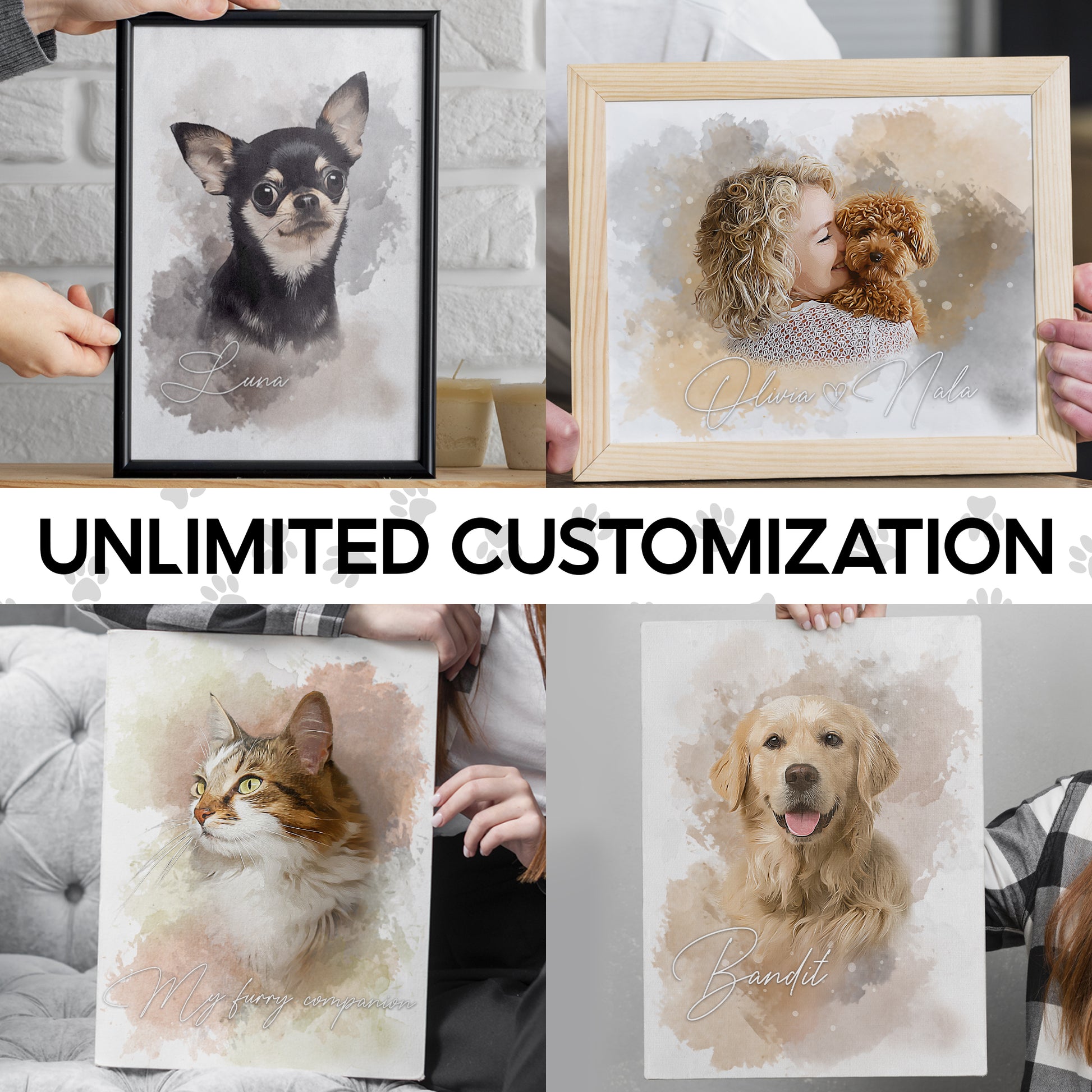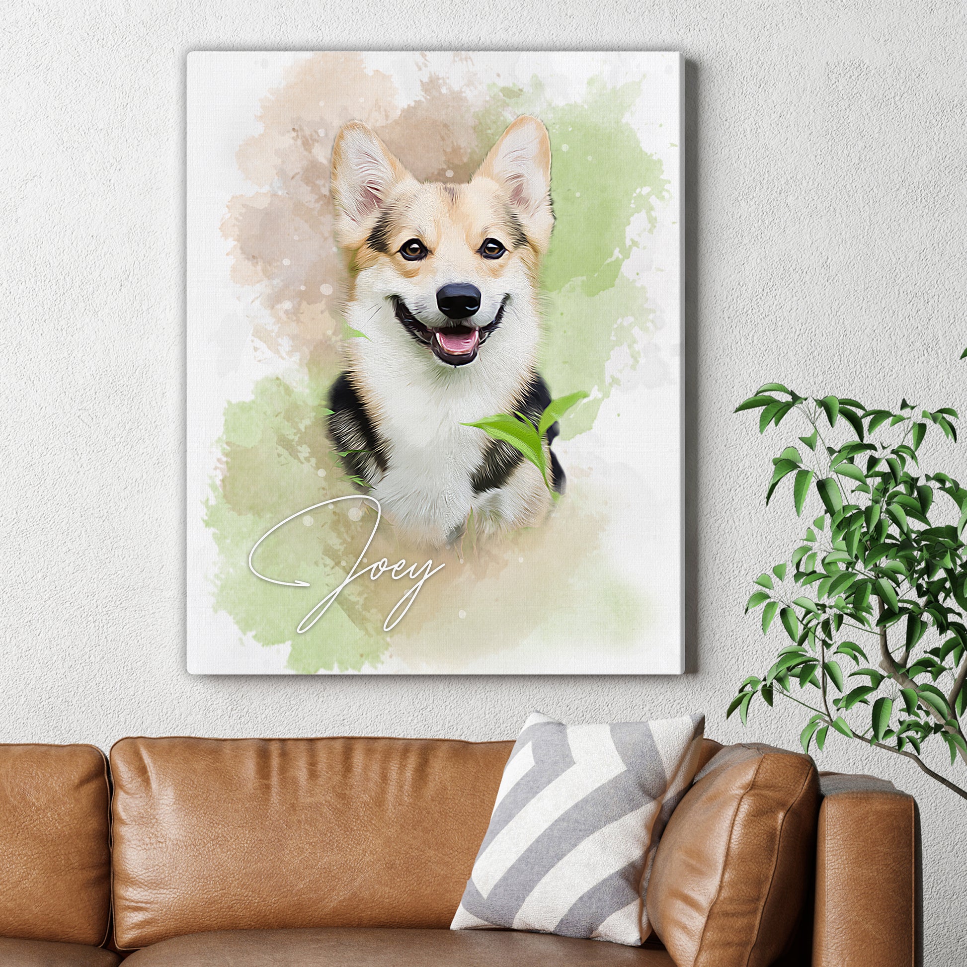 Custom Pet Portrait from Photo, Customized Watercolor Portraits Canvas from Picture, Personalized Dog Memorial Canvas, Customized Pet Gifts