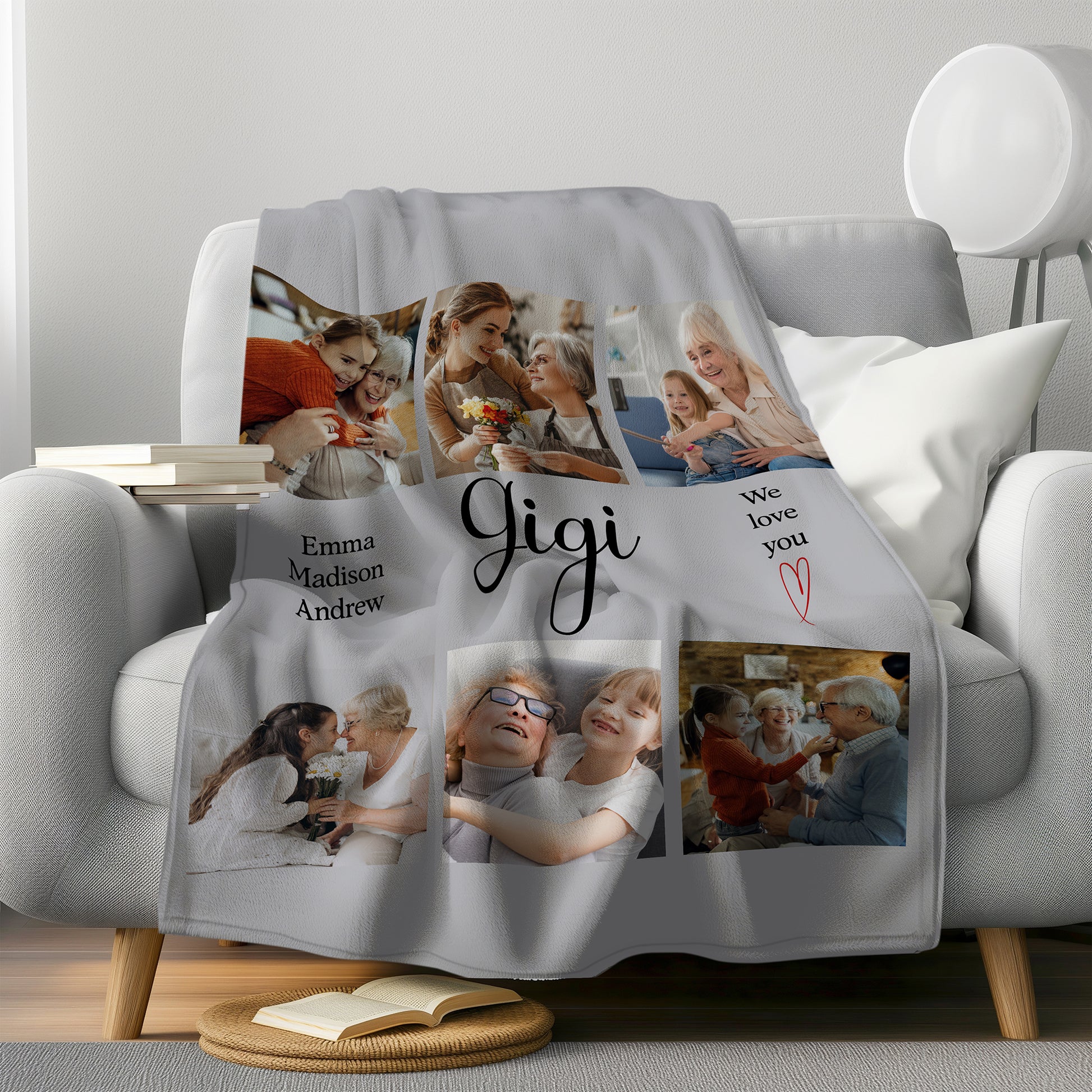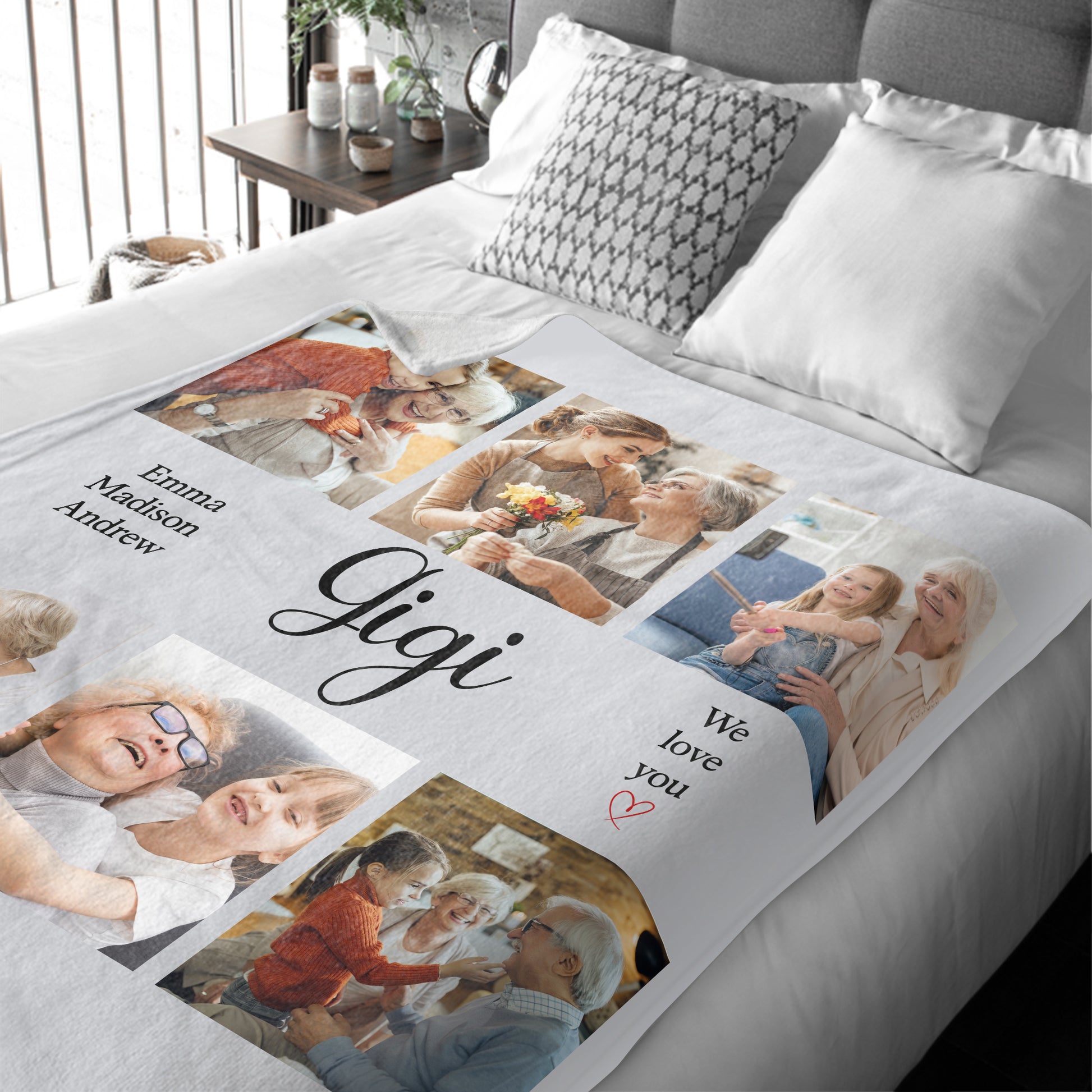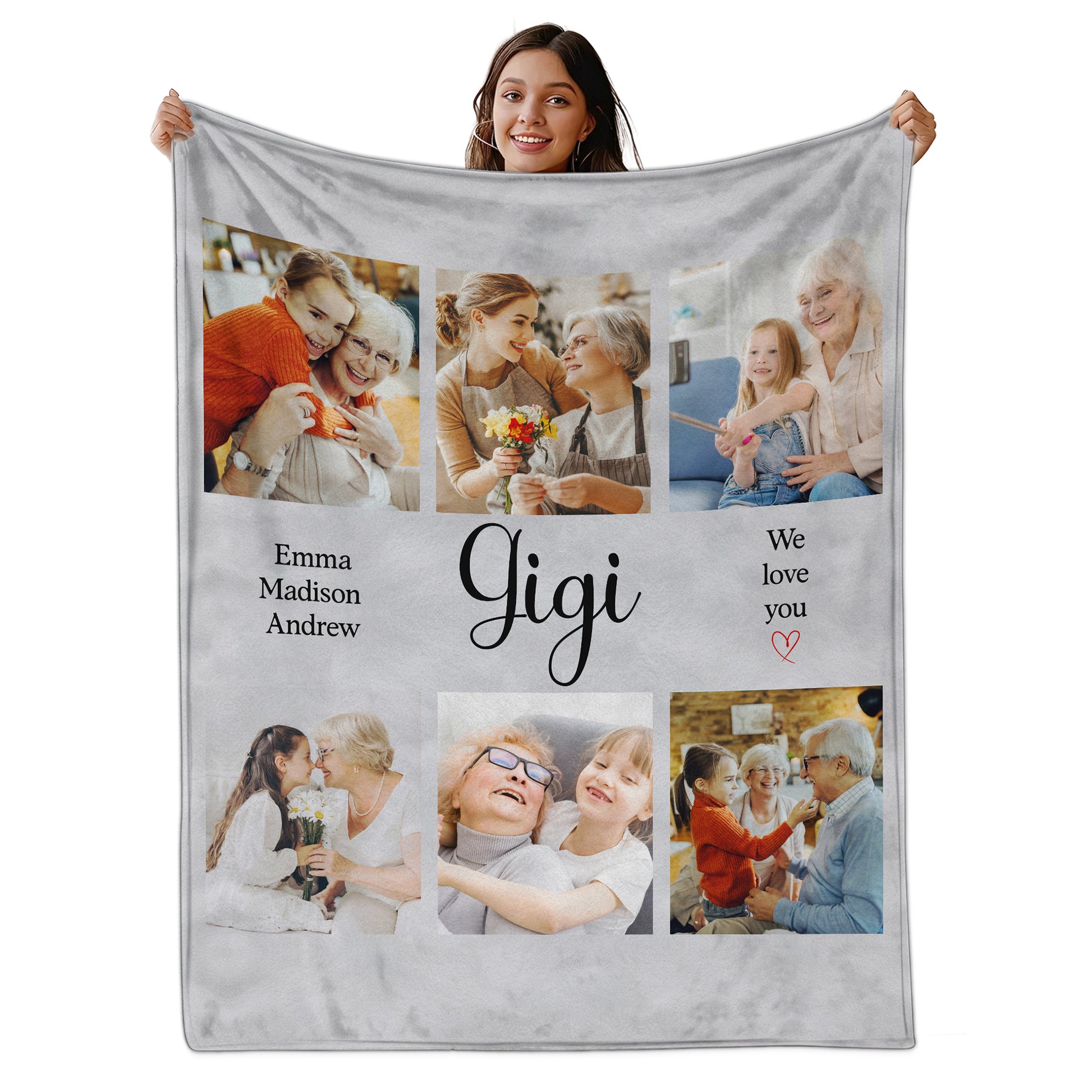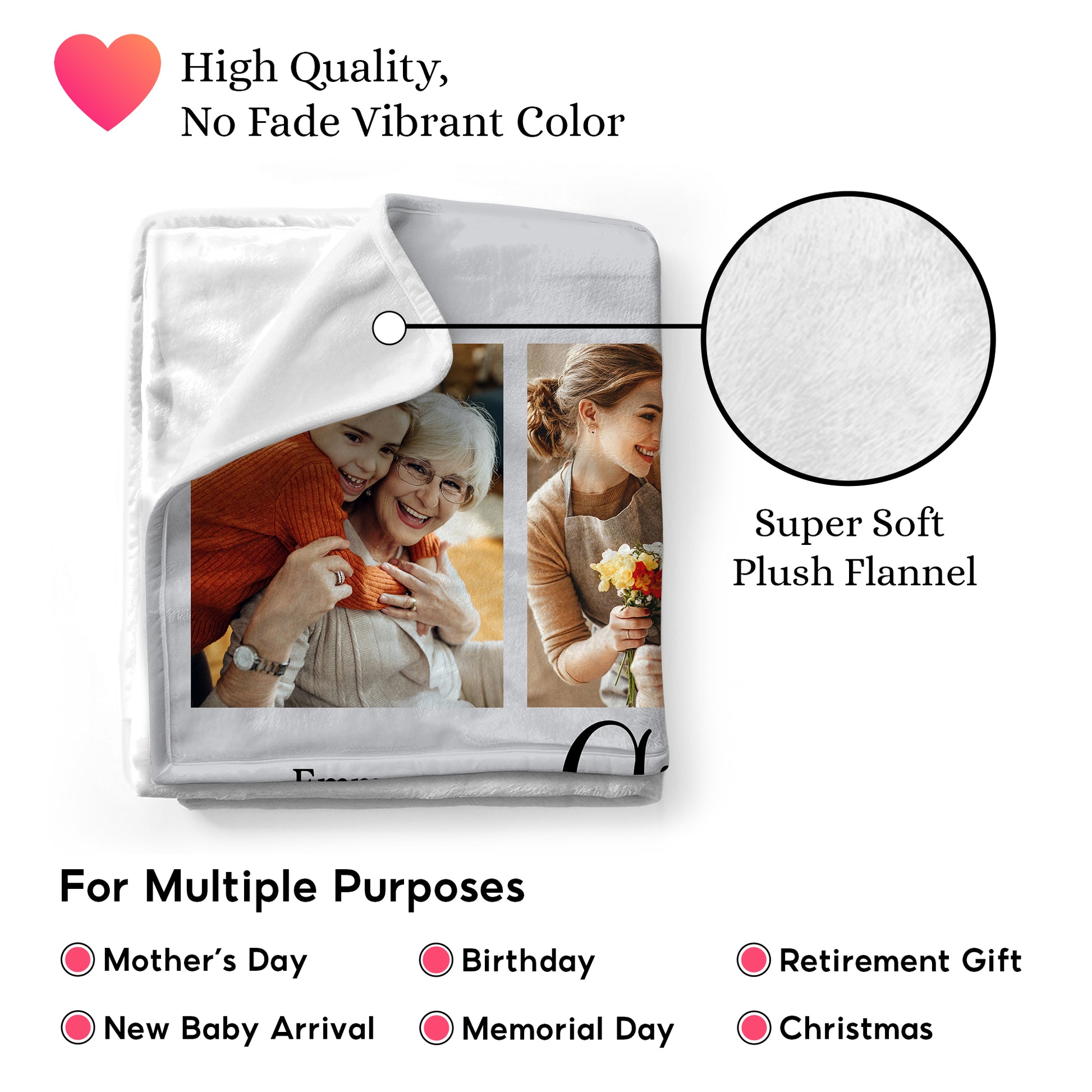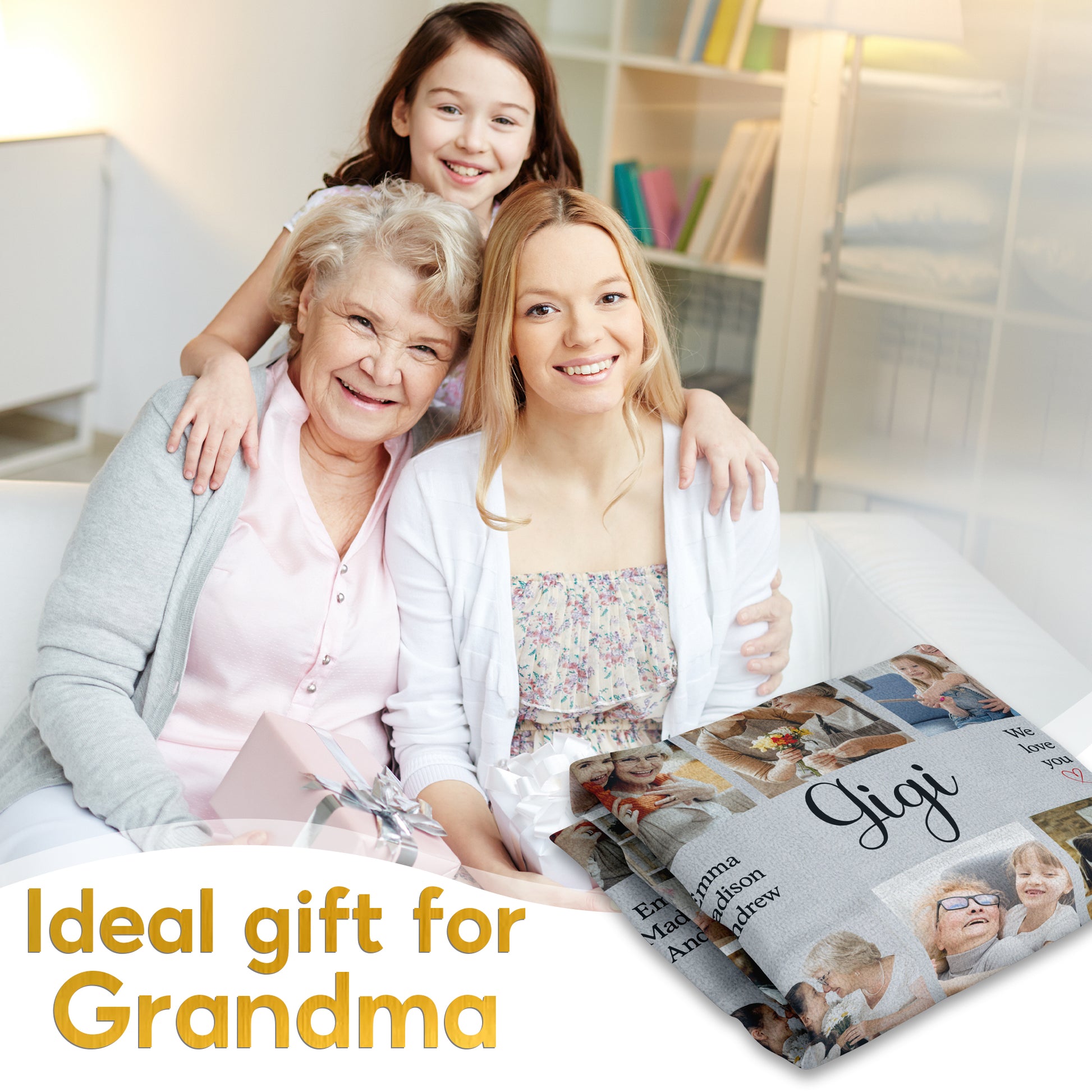 Custom Photo Collage Blanket, Personalized Grandma Blanket with Family Pictures and Names, Happy Mother's Day Gift for Mom or Grandma