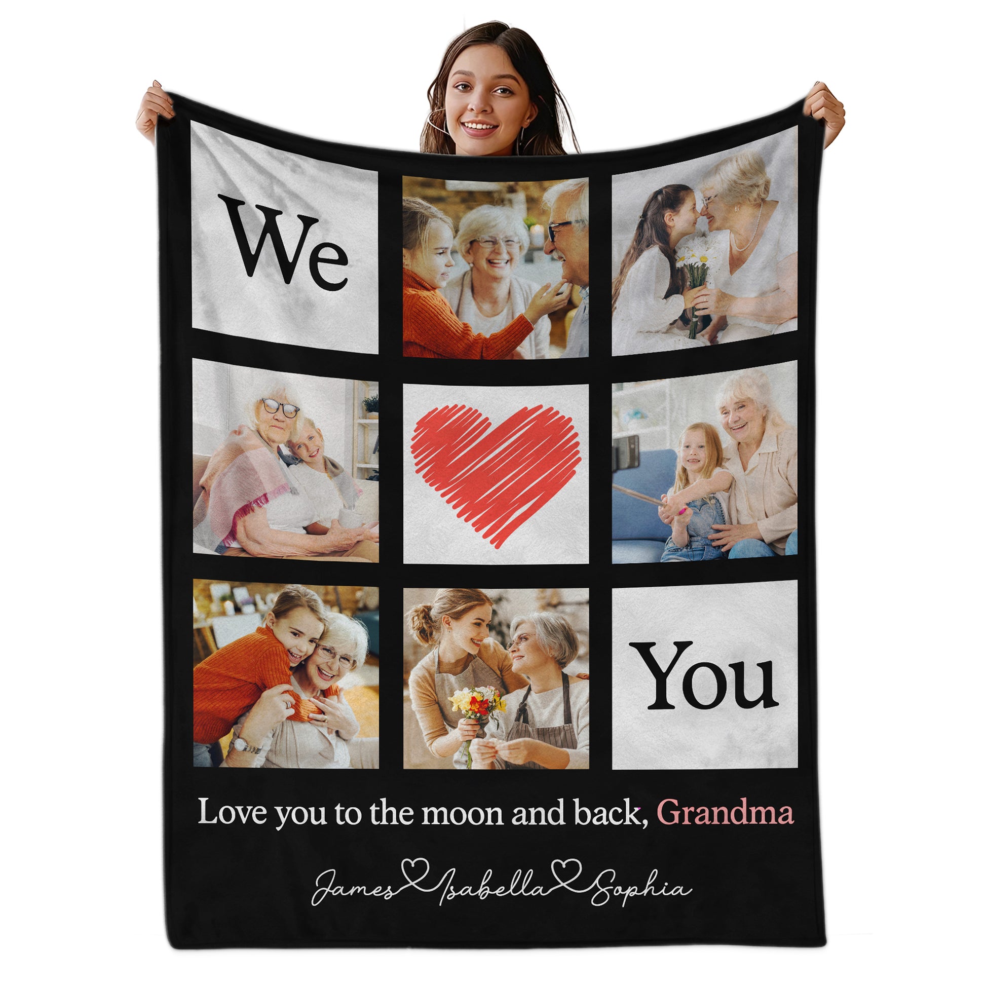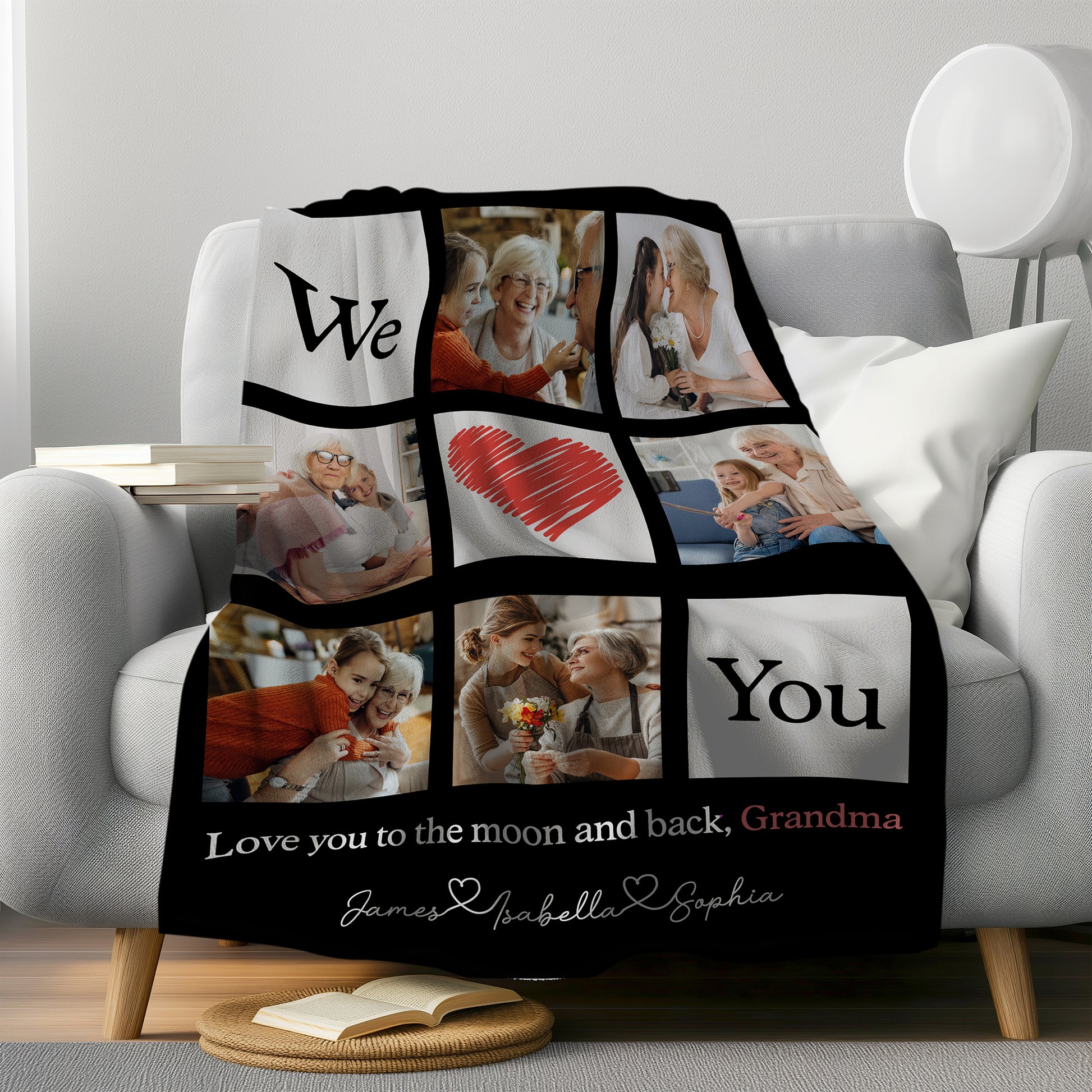 Custom Photo Collage Blanket, Personalized Grandma Blanket with Kids' Names and Pictures, Floral Mother's Day Gift for Mom or Grandma