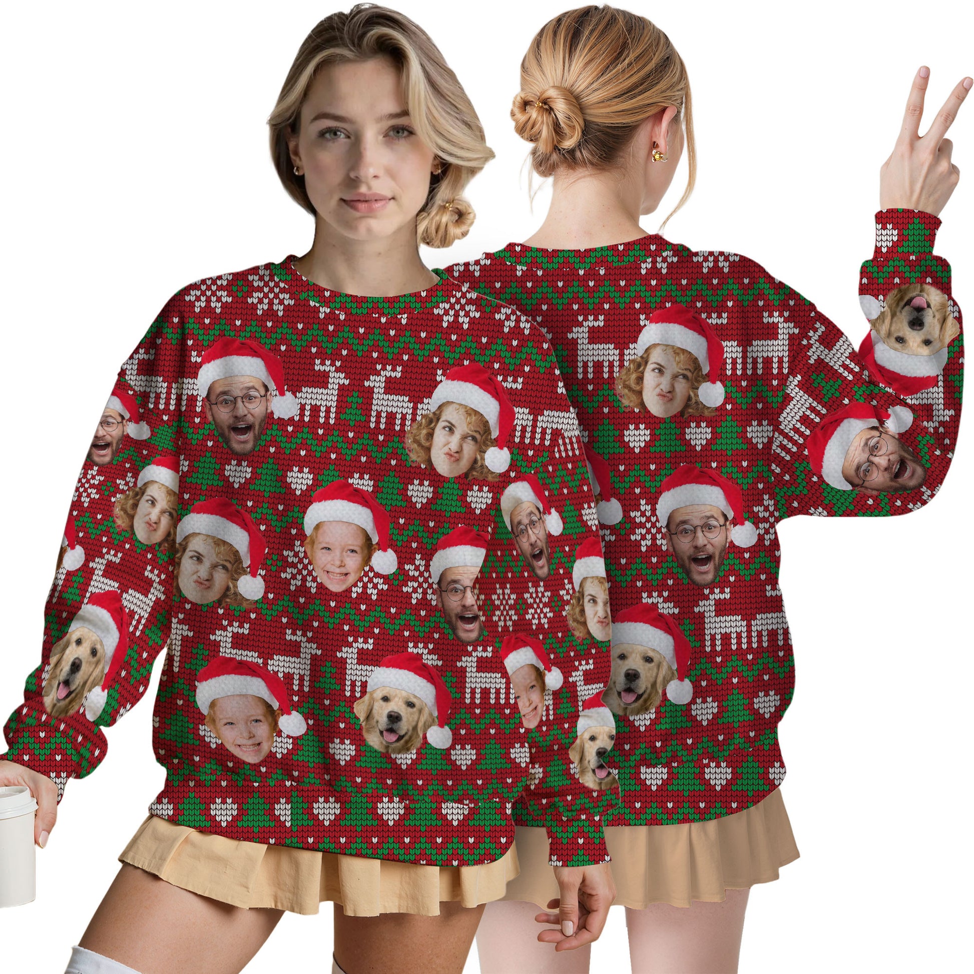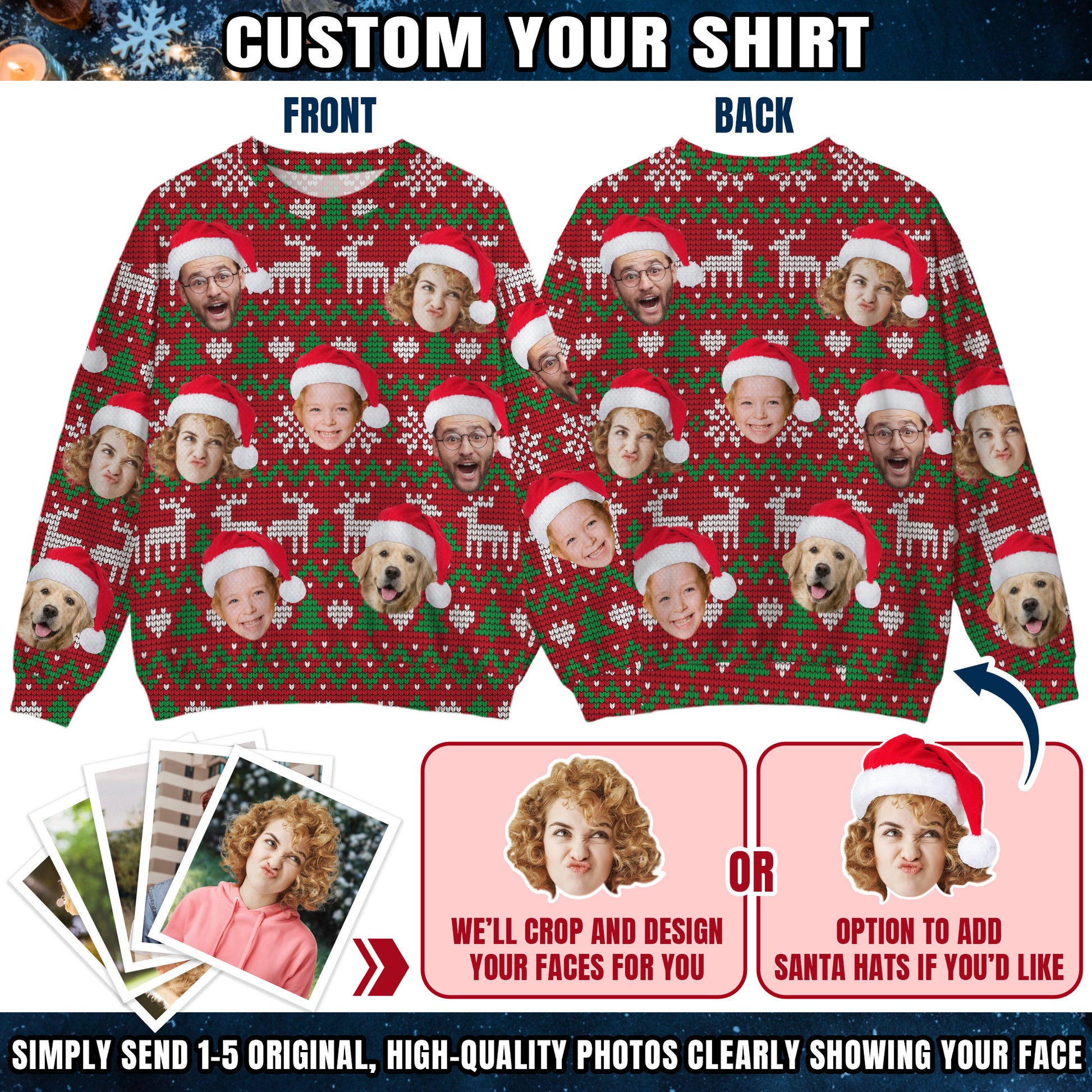Custom Ugly Christmas Sweater for Men Women Couples Boyfriend Girlfriend Family Dad Mom, Custom Ugly Christmas Sweater with Face Photo, Personalized Sweatshirt with Picture Funny Xmas Gift ST33