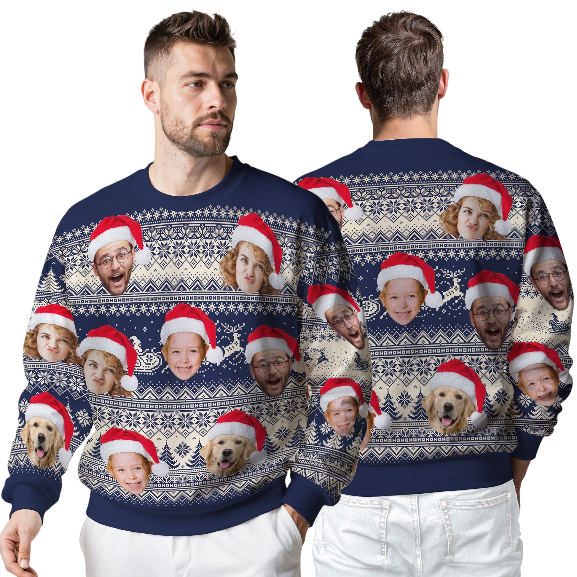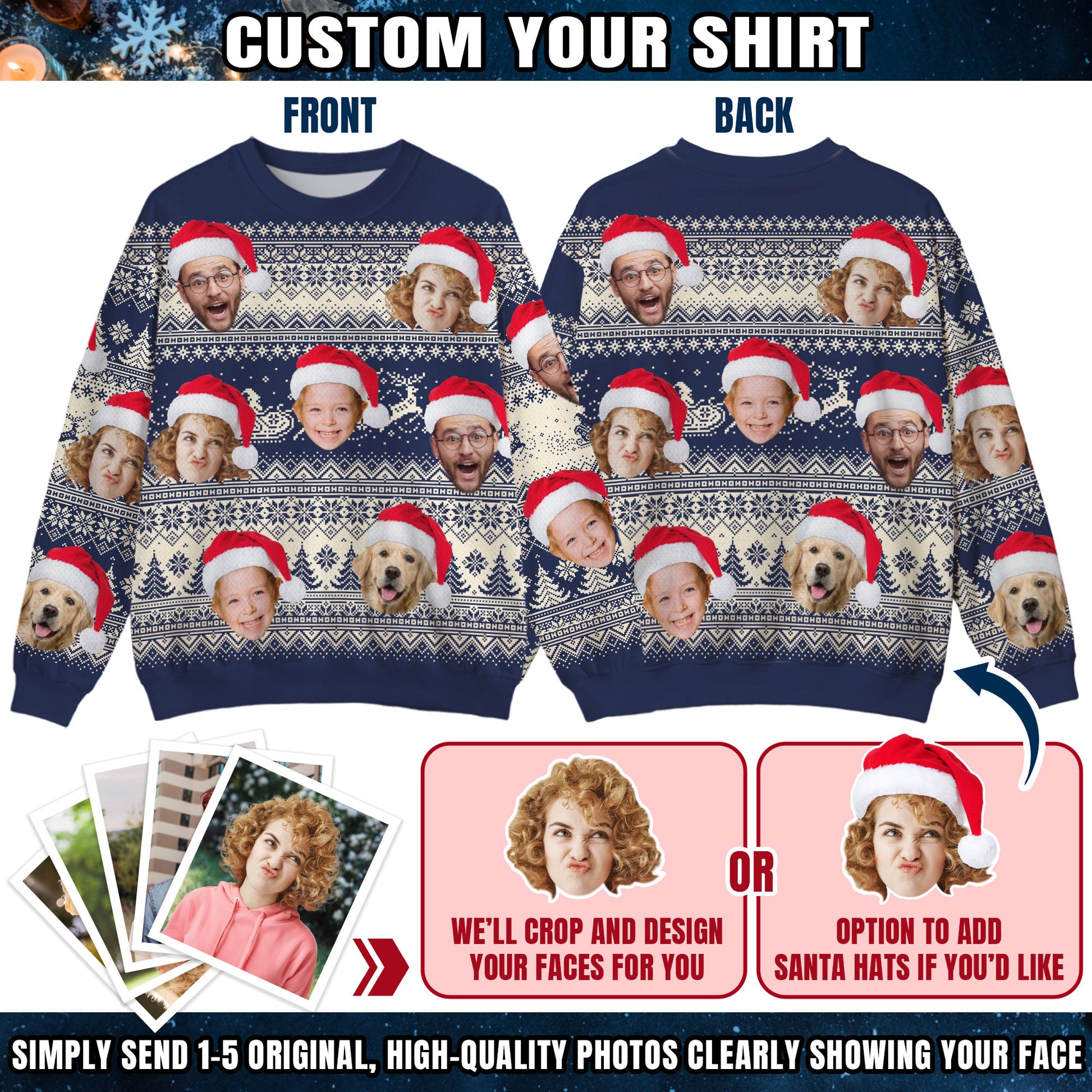 Custom Ugly Christmas Sweater for Men Women Couples Boyfriend Girlfriend Family Dad Mom, Custom Ugly Christmas Sweater with Face Photo, Personalized Sweatshirt with Picture Funny Xmas Gift ST4