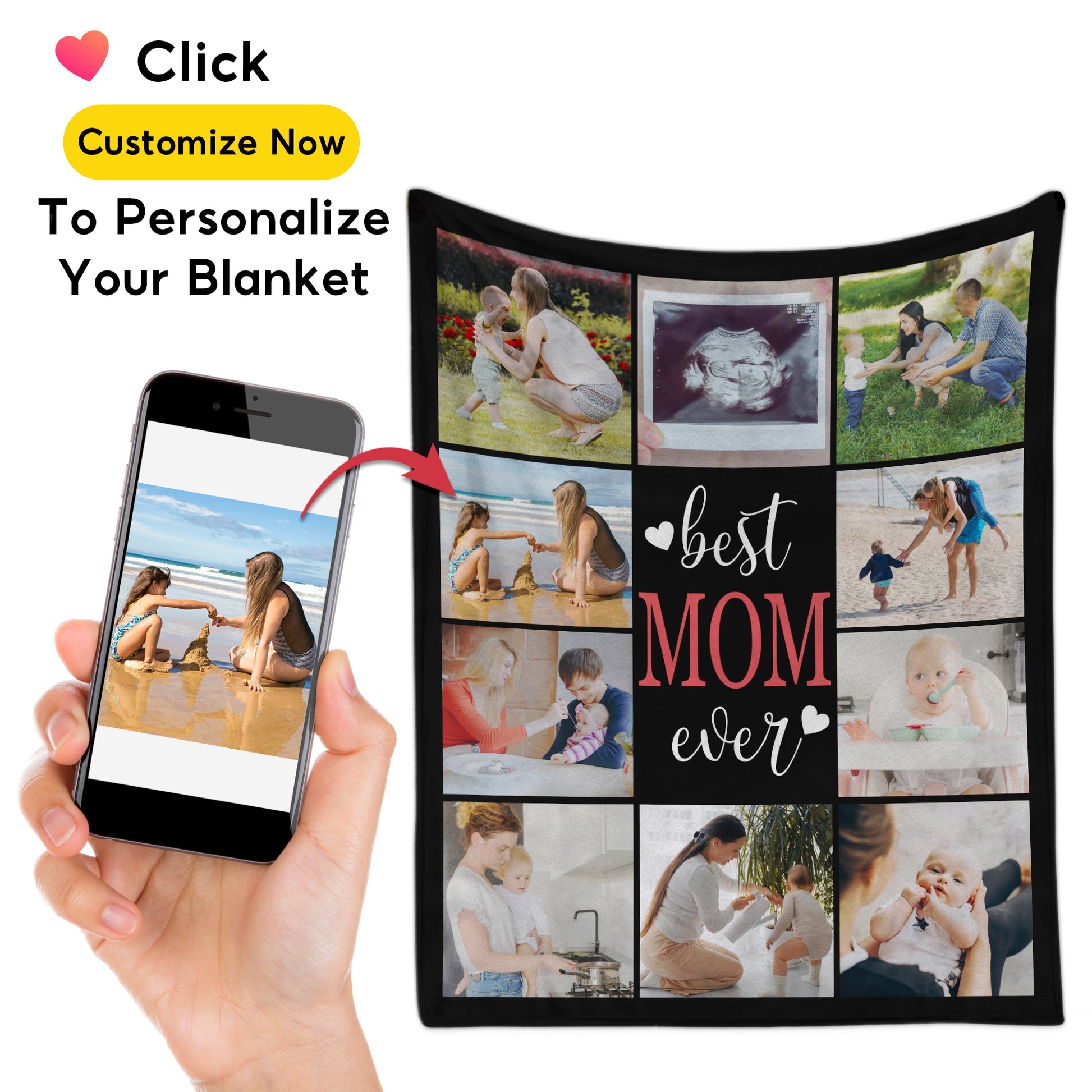 - Custom Mom Blanket: Create a heartfelt gift by personalizing your Best Mom Ever blanket with 1 to 6 cherished photos. Choose your preferred size (30x40, 50x60, 60x80) and background color to make it truly special.