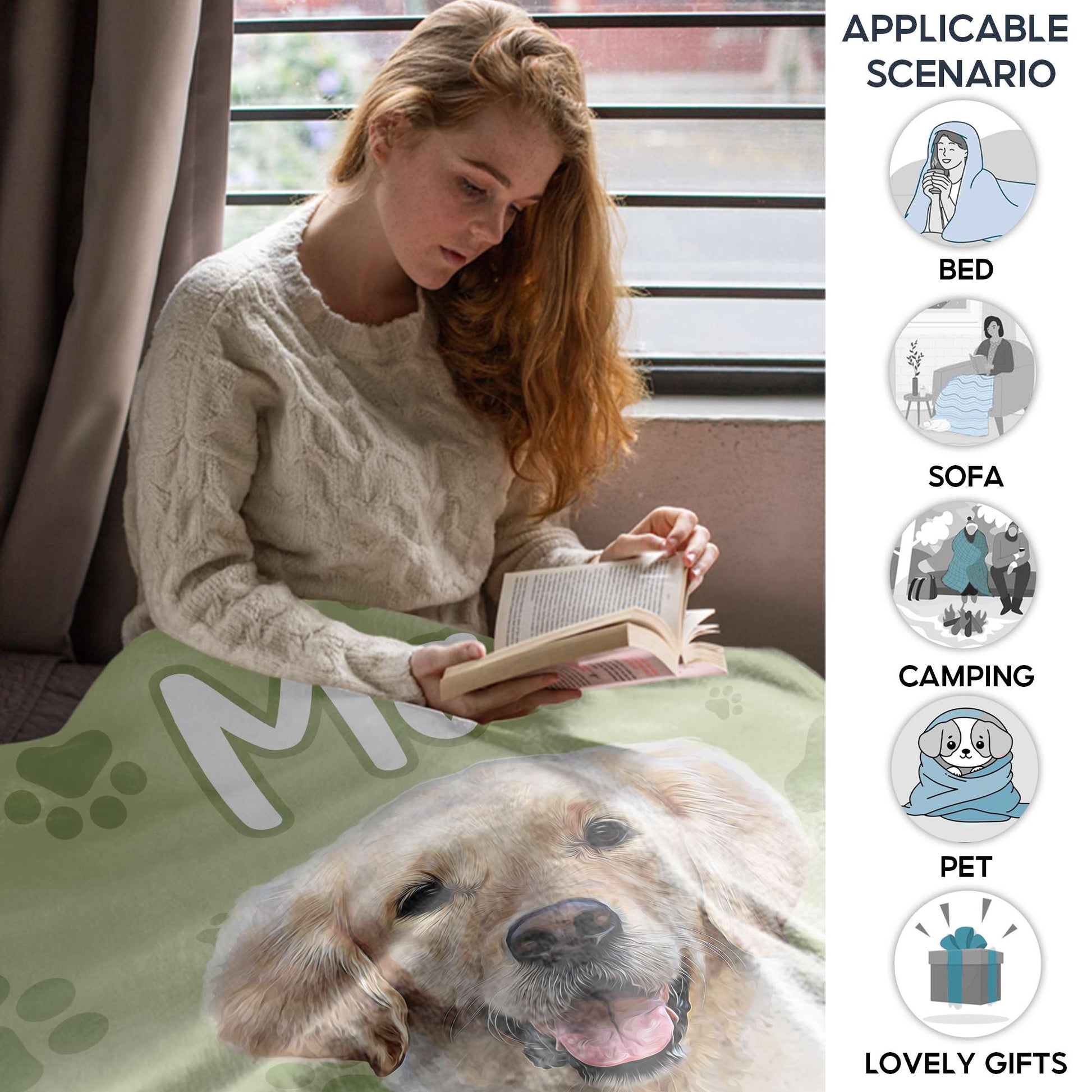 Personalized Dog Blanket with Name and Photo, Personalized Dog Memorial Gifts for Women, Men, Parents, Dog Lovers, Dog Owners, Custom Dog Print Flannel Blanket